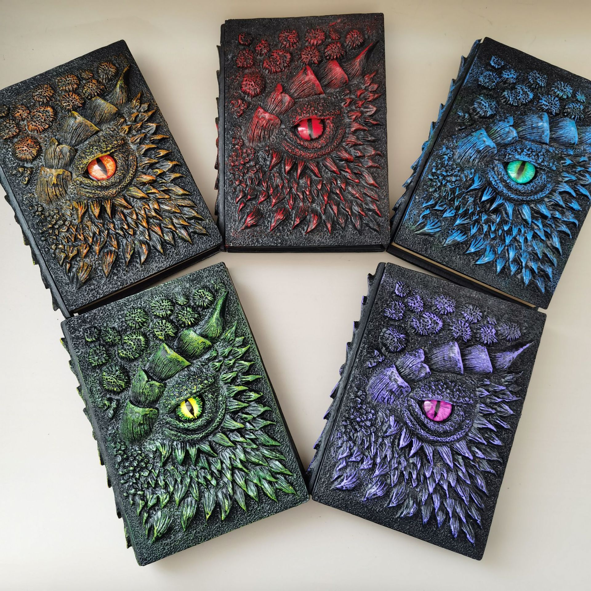 3D エンボスノートブック英国スタイルのクラシックノートブック赤青金緑紫レトロドラゴンブック樹脂カバー手元帳