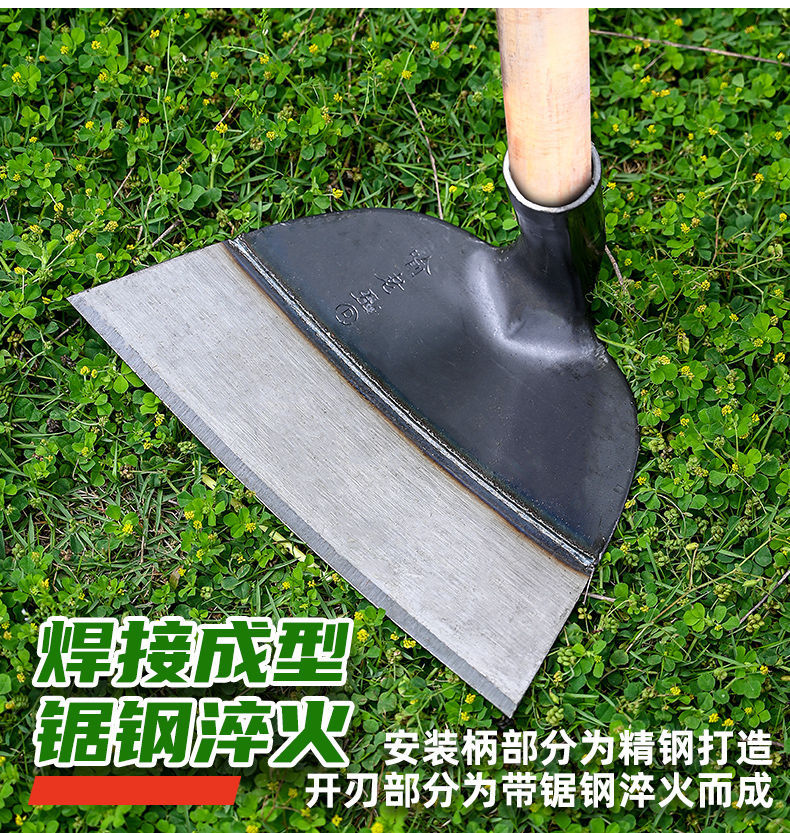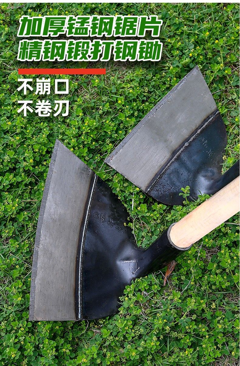锰钢加厚焊接锄头宽锄加宽平锄扇形锄开山挖土锄草神器带木柄农用