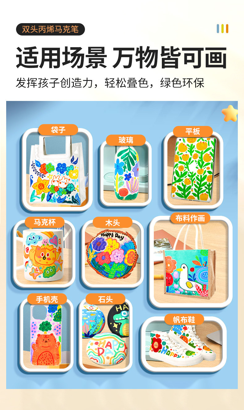 アクリルマーカー 子供用アート専用 速乾性 色ペン ソフトヘッド DIY 手描き落書き アクリルペン