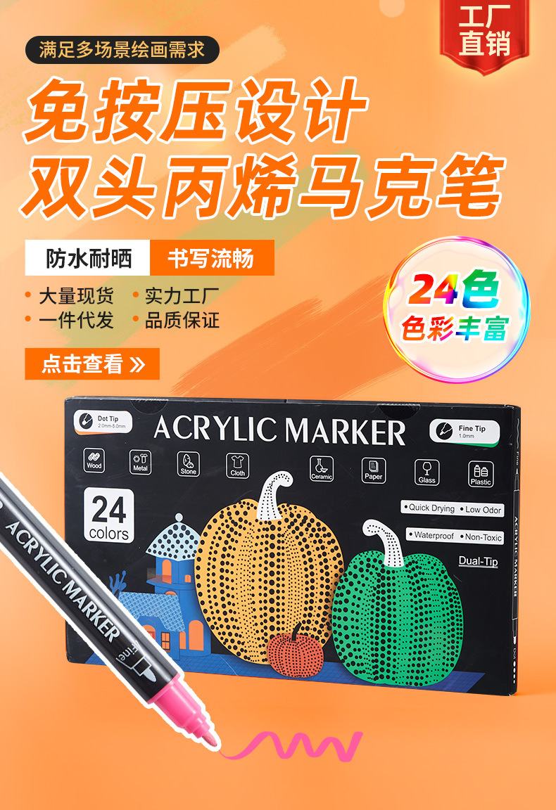 現貨直送 液体タイプのアクリルマーカー 防水 速乾性 滲まない 学生向け 手描き 美術用品 美術水彩ペン