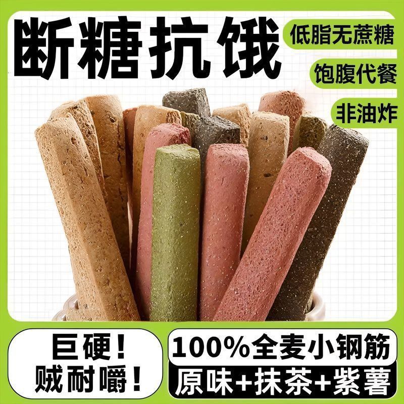 【硬】小钢筋低脂全麦棒饼干代餐饱腹耐嚼磨牙棒解馋小零食磨牙