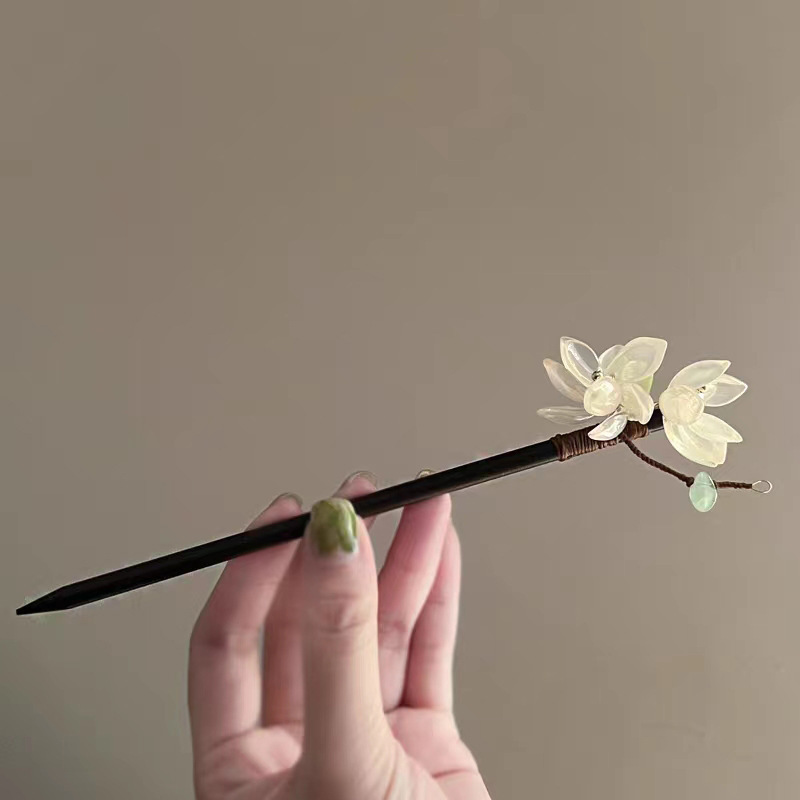 黑檀木发簪女清冷感发饰玉兰花步摇簪子古风旗袍头饰日常盘发发钗