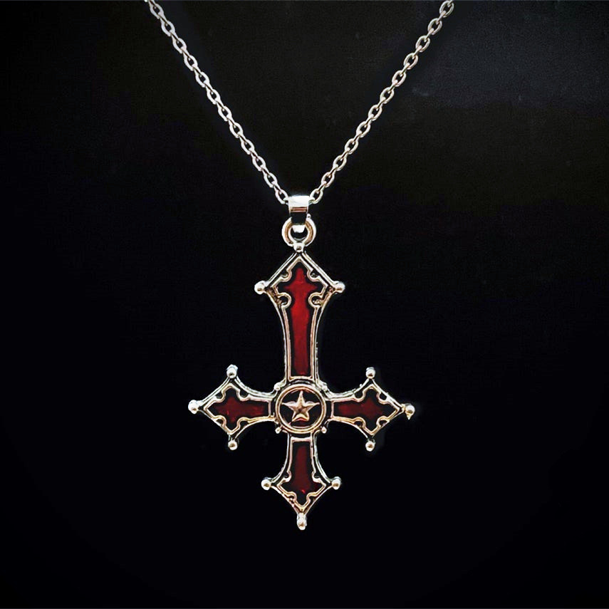 人気の熱い販売深紅ゴシッククロスペンダントネックレスジュエリーヨーロッパとアメリカのパンクスタイル奇妙なスタイル