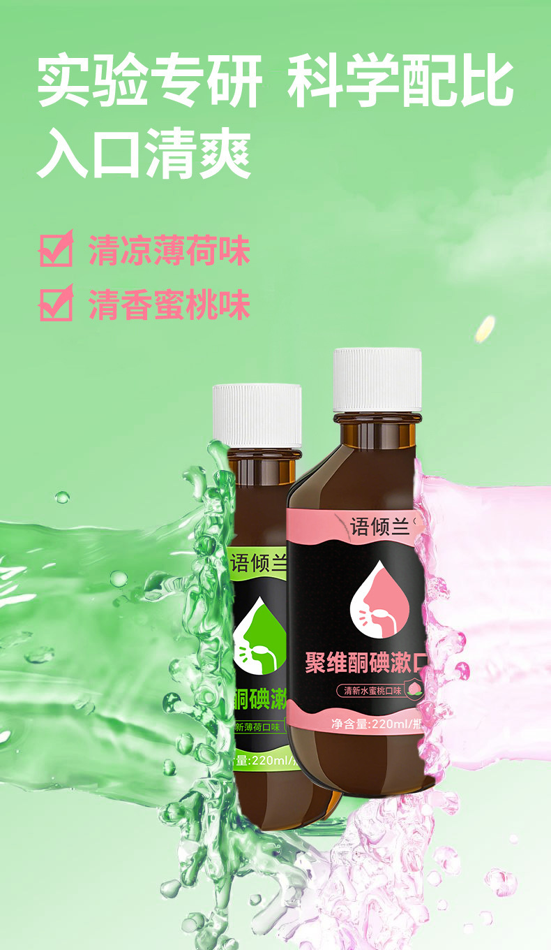 颜色分类 语倾兰聚维酮碘含漱液(薄荷),语倾兰聚维酮碘含漱液(水蜜桃)