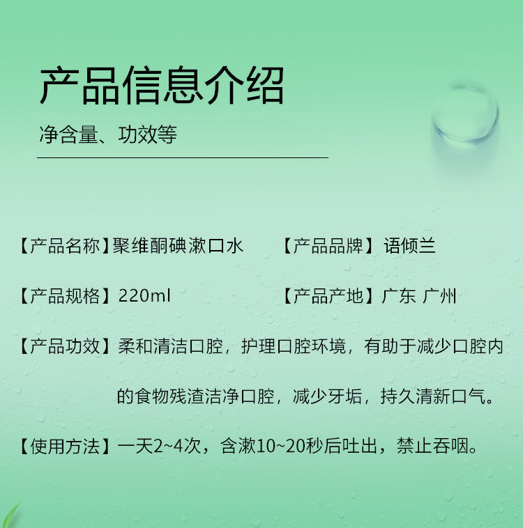 抖音同款语倾兰聚维酮碘含漱液220ml清新口气聚维酮碘漱口水