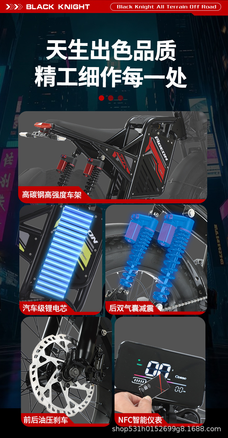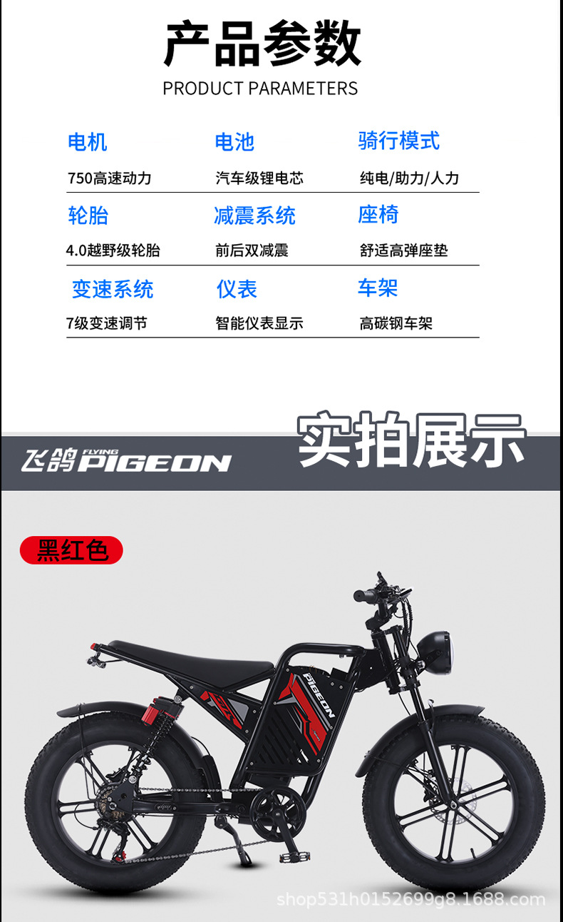 雪地车宽胎电动自行车双电机EBiK电动助力车双减震双驱电机电动车