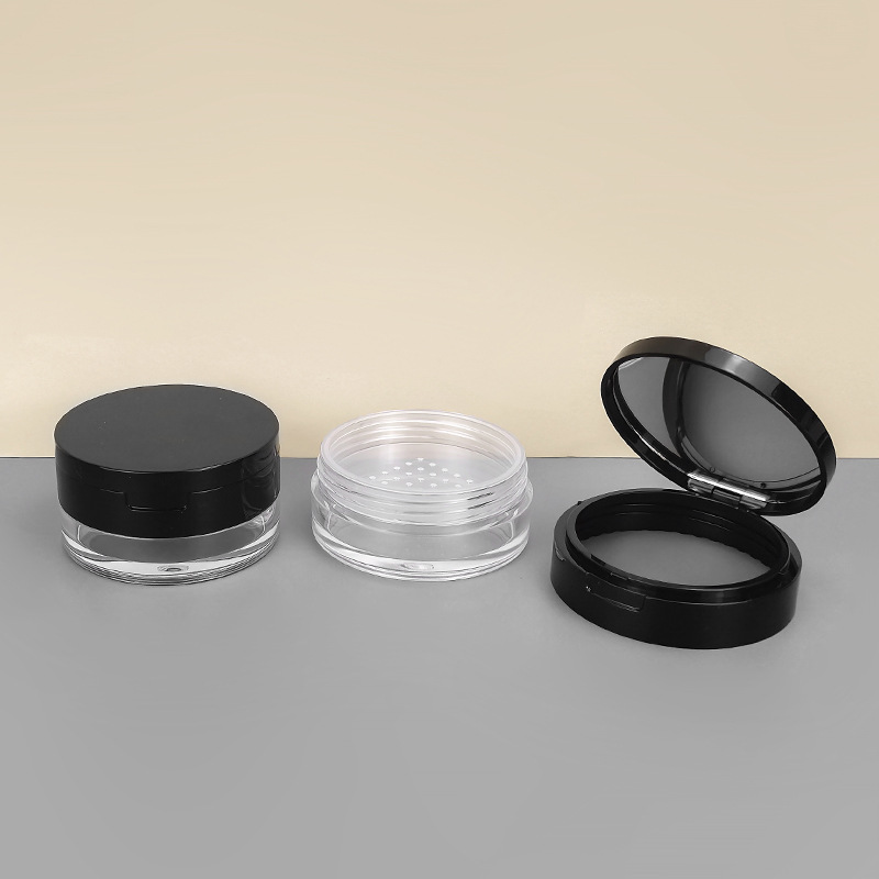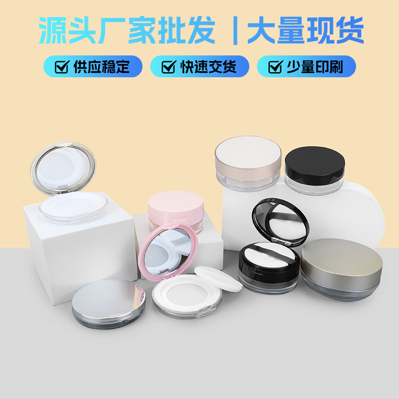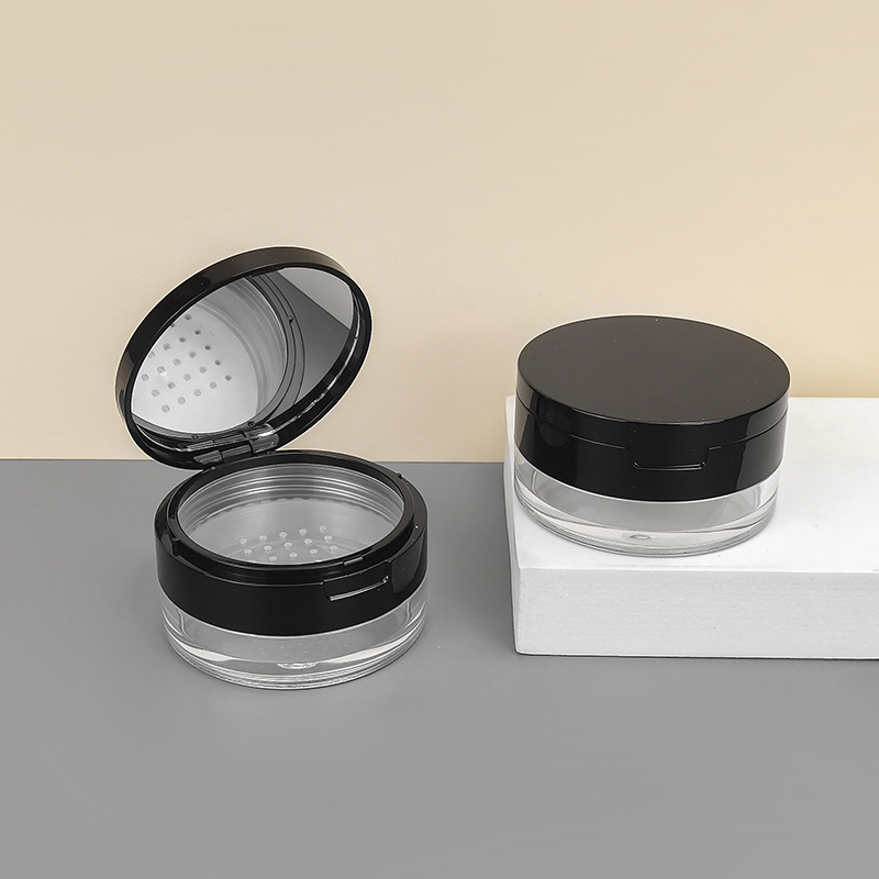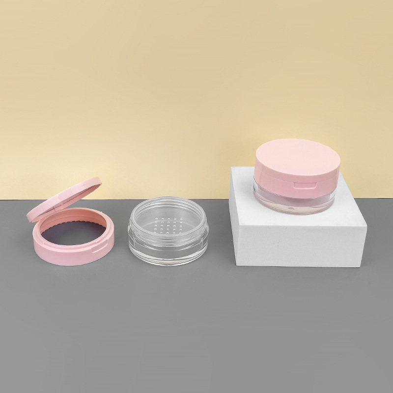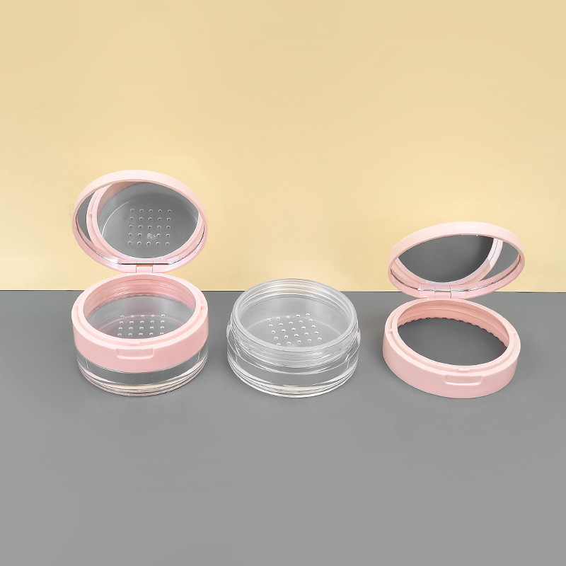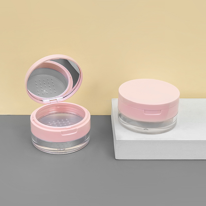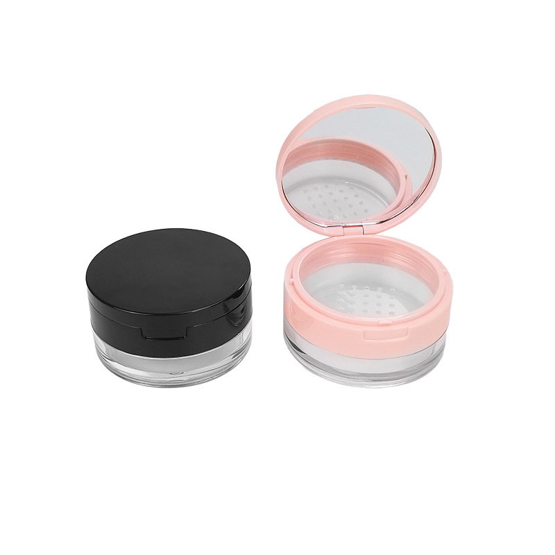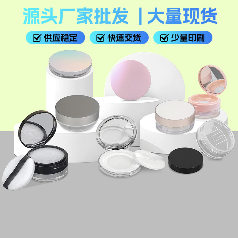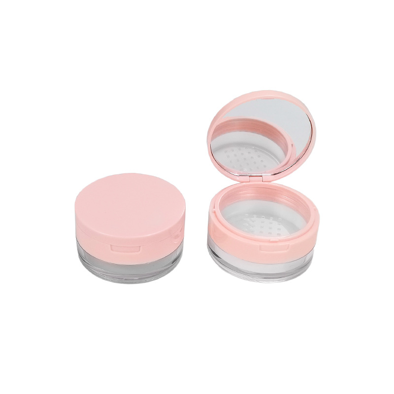 现货20g中格散粉盒翻盖带镜塑料网格粉末定妆蜜粉分装空盒可定 制