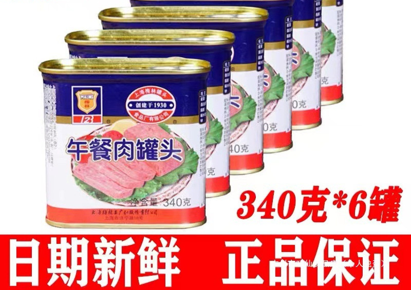 上海美林ランチョンミート 340g*6缶 朝食鍋 アウトドア キャンプ すぐに食べられるポークフード インスタント缶