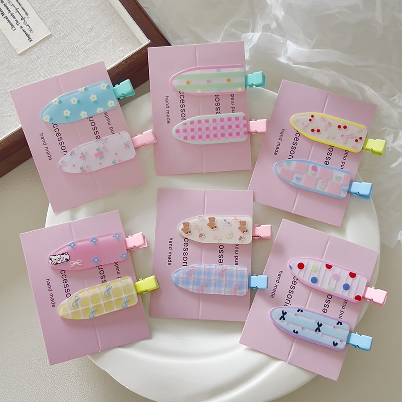 一对装印花蝴蝶结少女无痕发夹女卡通可爱侧边刘海碎发夹发卡发饰