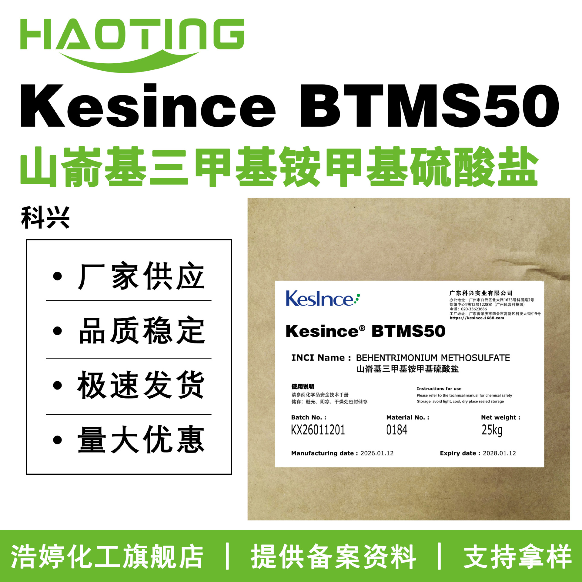 科兴 Kesince BTMS50 山嵛基三甲基铵甲基硫酸盐 护发调理剂
