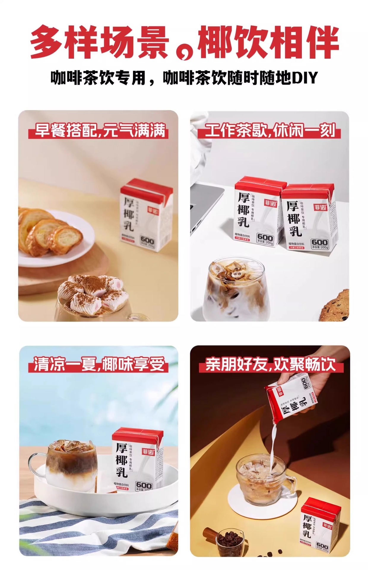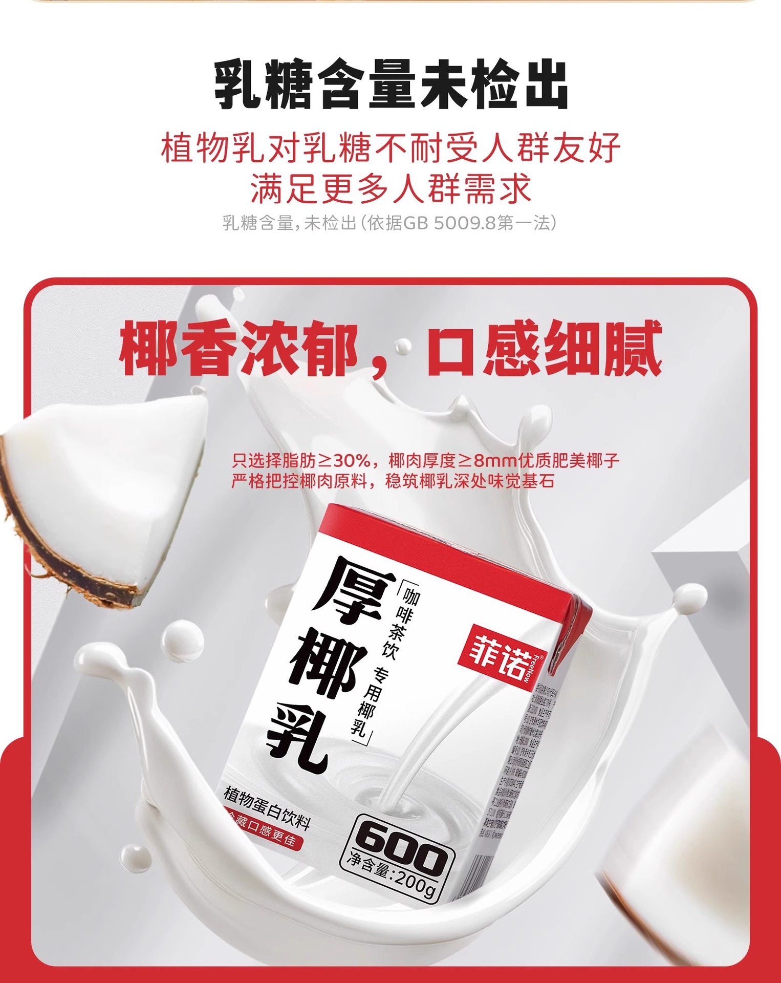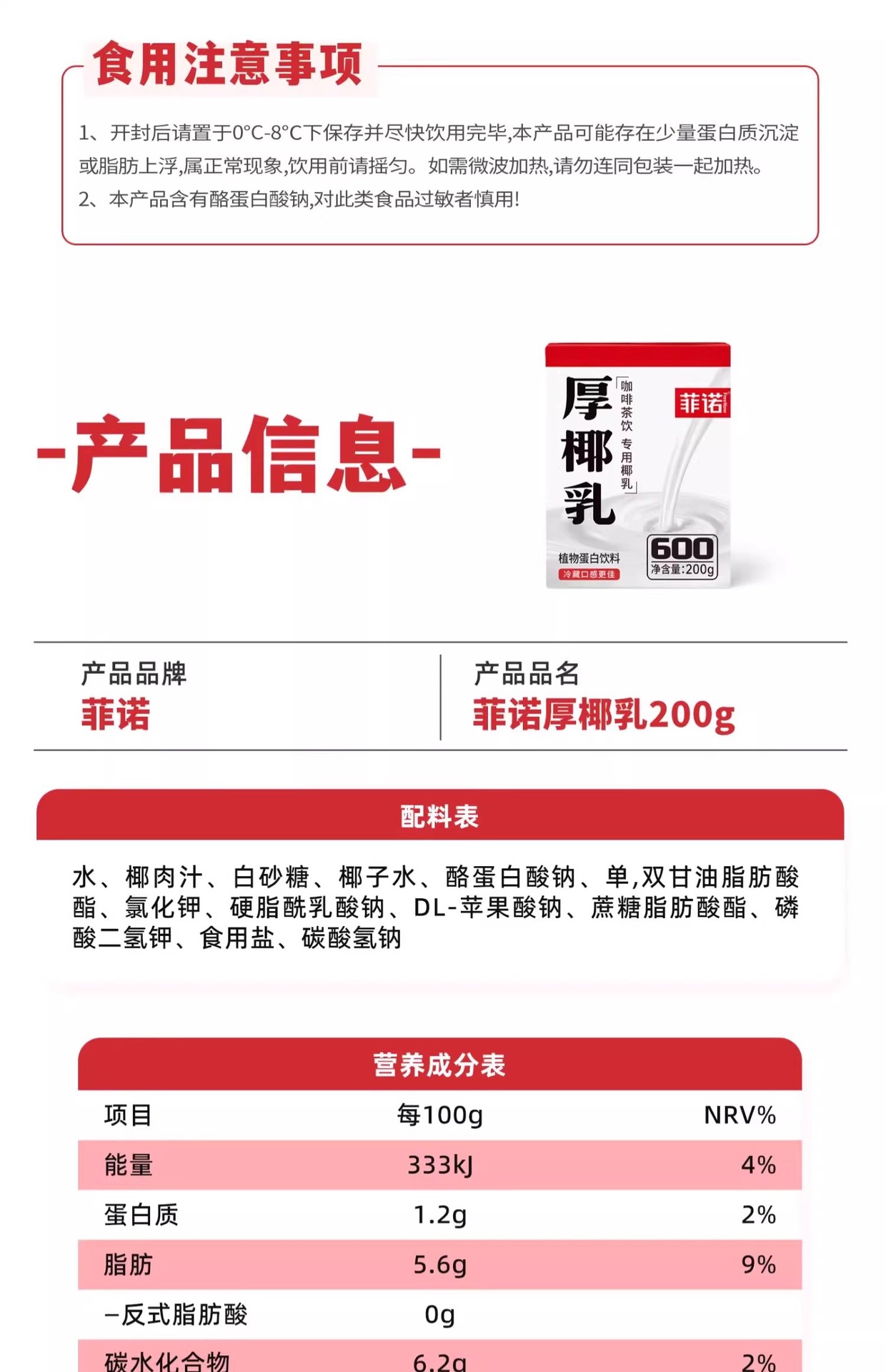 菲诺厚椰乳200g小包装生椰拿铁椰奶椰浆耶乳咖啡伴侣奶茶店专用
