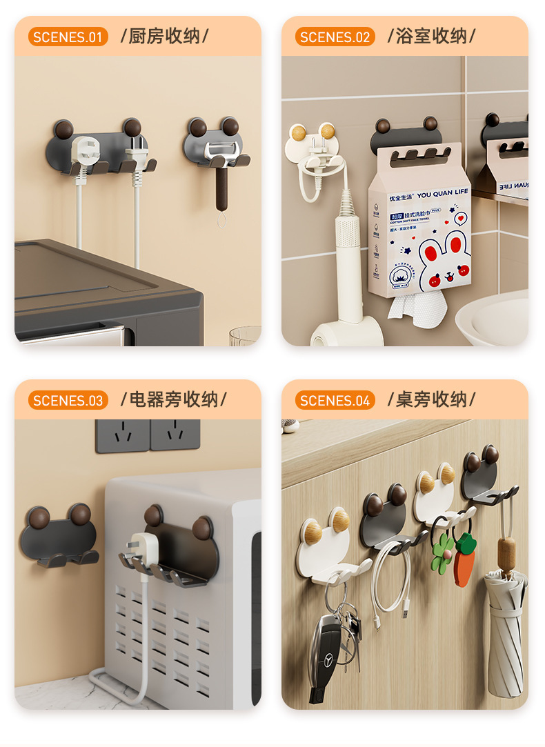 壁掛けプラグフック壁掛け粘着フック電源コードソケットホルダーキッチン収納