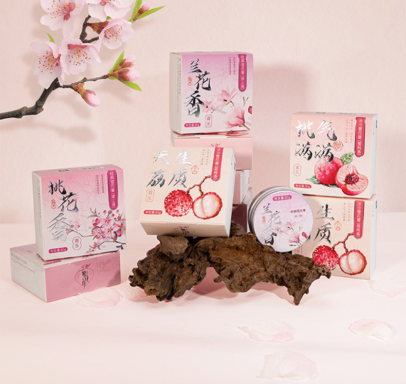 产品规格 经典桃花香(浦江调)80g,经典兰花香(夜上海)80g,冰沙荔枝香80g,冰沙蜜桃香80g