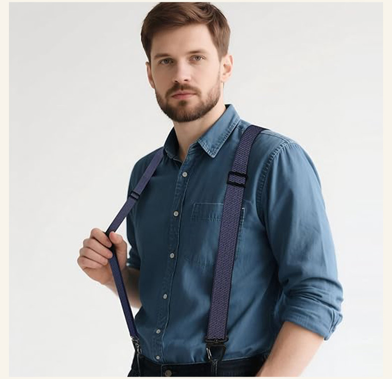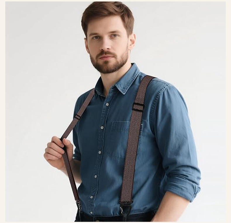 跨境男士背带钩扣吊裤带新款四挂钩背带西裤商务弹力肩带Ins吊带