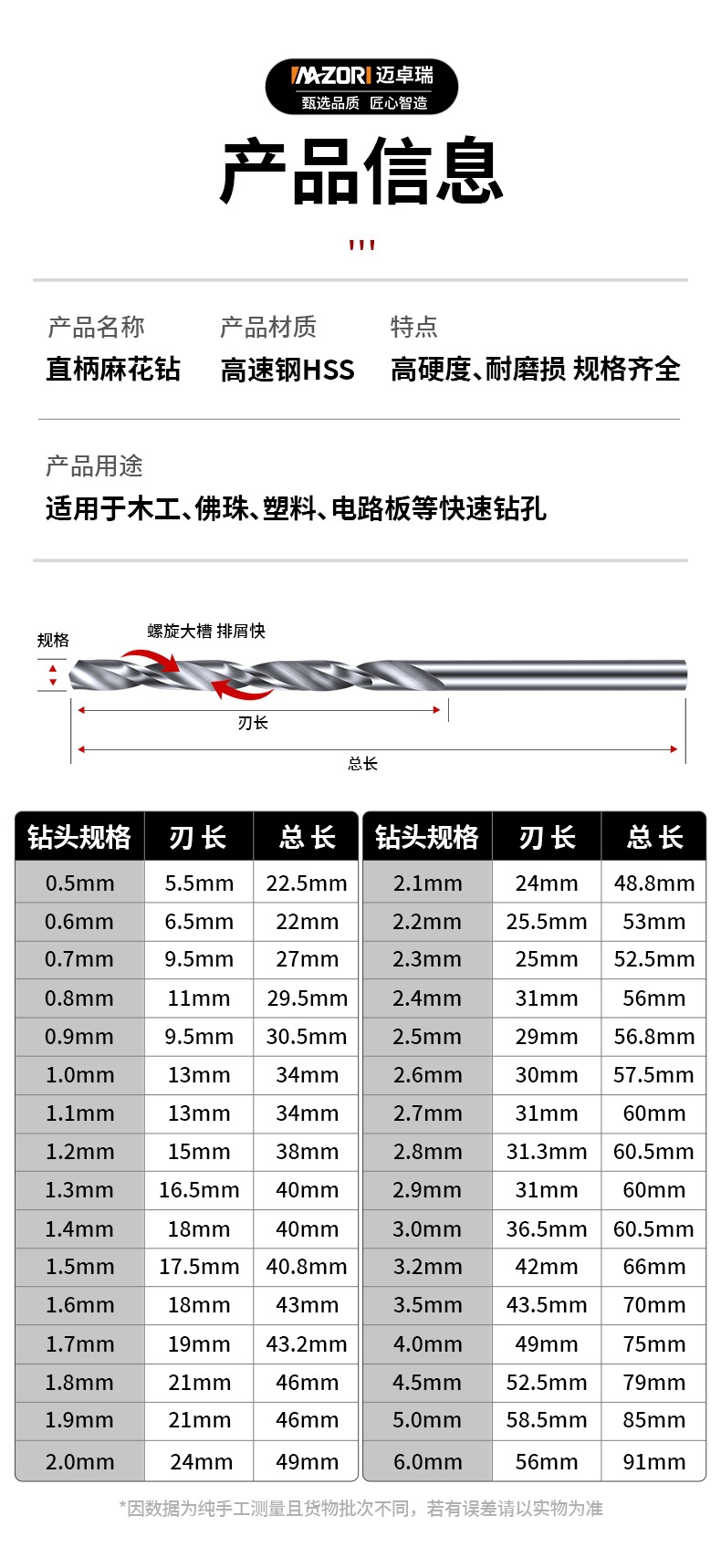 仕様とモデル 【0.5mm~2.0mm】8本セット,【0.6mm~2.0mm】10本セット,【0.8mm~2.0mm】10本セット,【1.0mm~3.0mm】10本セット,【0.6mm~3.0mm】18本セット,【0.8mm~3mm】10本入り メタル穴あけ専用,【1.5~6.5mm】13本パック - ハンド電動ドリルによく使用されます。,ご注意: 寸法はミリメートル単位です - ご注文前に寸法をご確認ください。,0.5mm 10本パック(針より細い),0.6mm 10本入り,0.7mm 10本入り,0.8mm 10本入り,0.9mm 10本入り,1.0mm 10本入り,1.1mm 10本入り,1.2mm 10本入り,1.3mm 10本入り,1.4mm 10本入り,1.5mm、10本入り(ブレスレットの一般的なサイズ),1.6mm 10本入り,1.7mm 10本入り,1.8mm 10本入り,1.9mm 10本入り,2.0mm --10本,2.1mm 10本入り,2.2mm 10本入り,2.3mm 10本入り,2.4mm 10本入り,2.5mm 10本入り,2.6mm 10本入り,2.7mm 10本入り,2.8mm 10本入り,2.9mm 10本入り,3.0mm 10本入り,3.2mm 10本入り,3.5mm 10本パック,4.0mm 10本入り,4.2mm 5本パック,4.5mm 5本パック,5.0mm 1~3本パック,5.5mm 1~3パック,6.0mm 1~3本パック,7.0mm 1~3本パック,8.0mm 1~3本パック,9.0mm 1~3本パック,10mm 3本パック