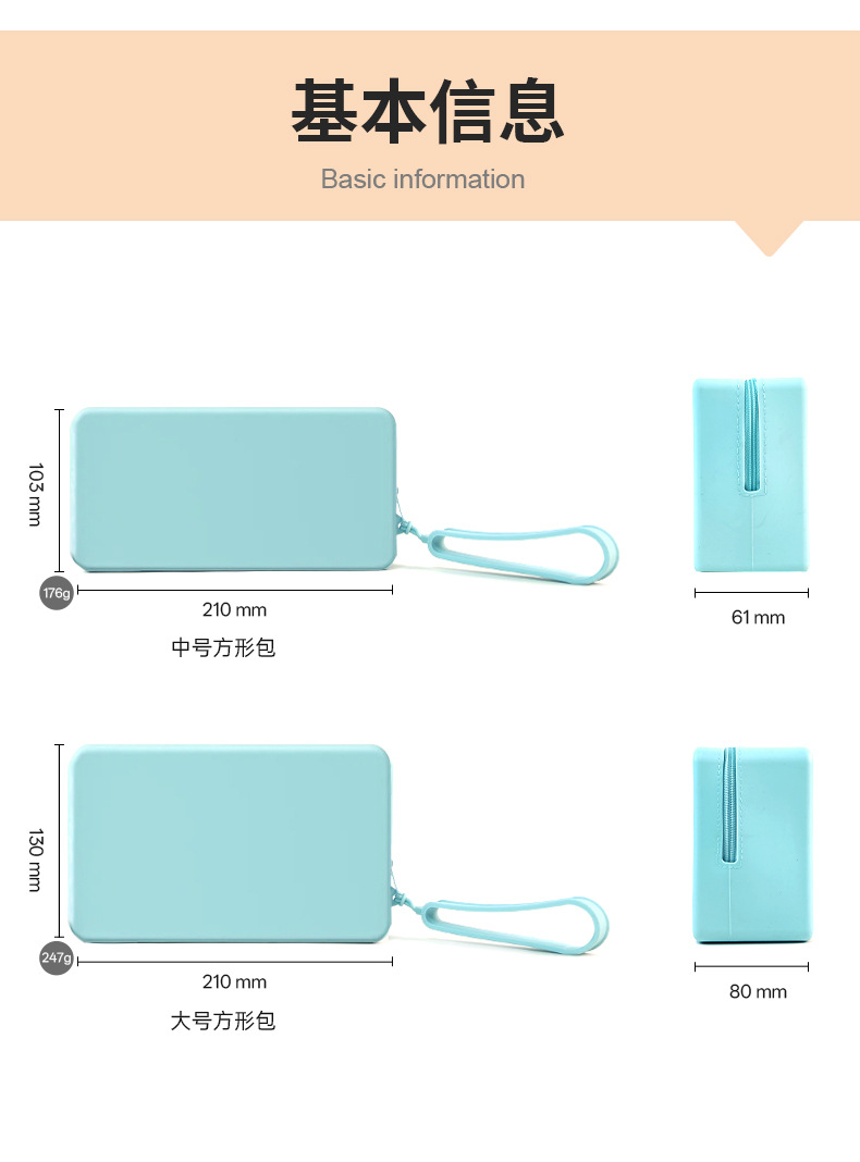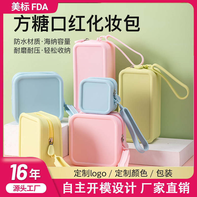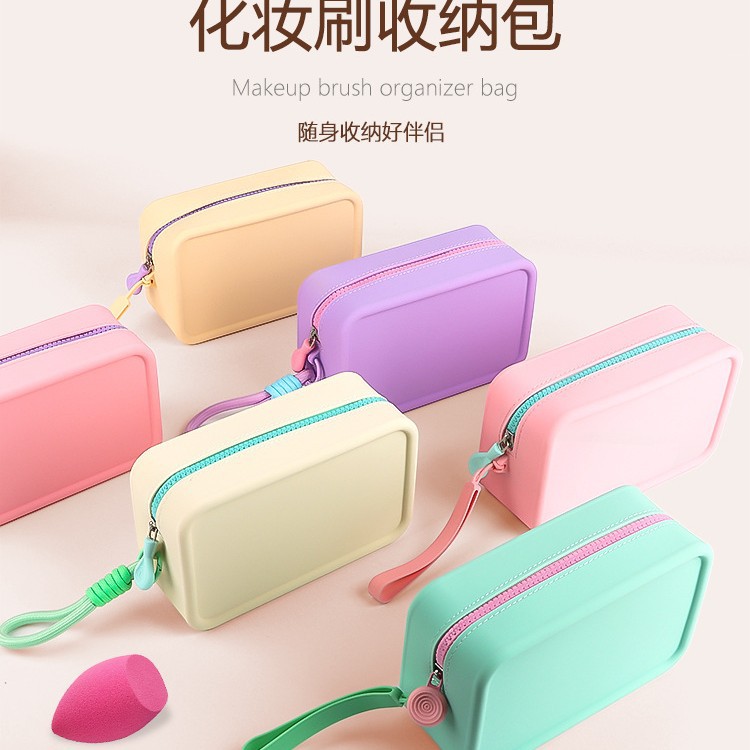 新款方形硅胶化妆品收纳包时尚纯色硅胶洗漱收纳袋大号手机收纳包