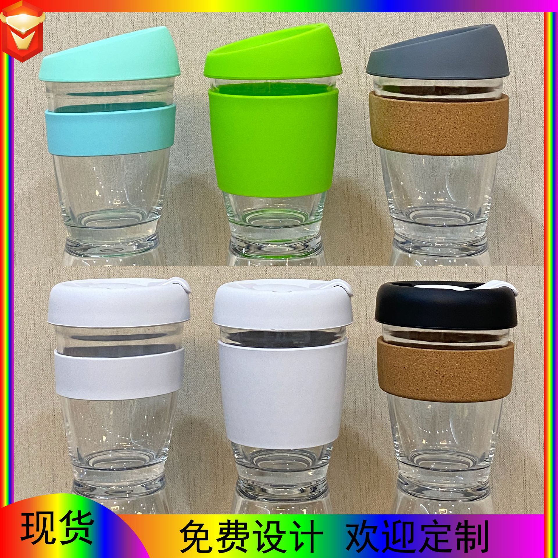350mlコルクカバー付きシリコンカバー滑り止めパーマ漏れ防止高ホウ素ガラスコーヒーカップオフィスカップ