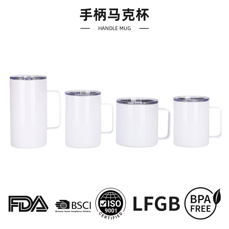国境を越えたカスタムステンレス保温カップ、持ち運び可能な昇華プリント付きハンドル付きウォーターカップ、12オンスのマグカップ、車用カップ、ウォーターカップ