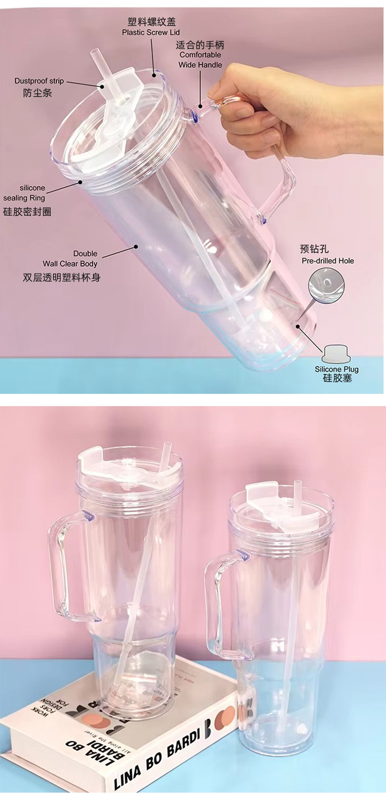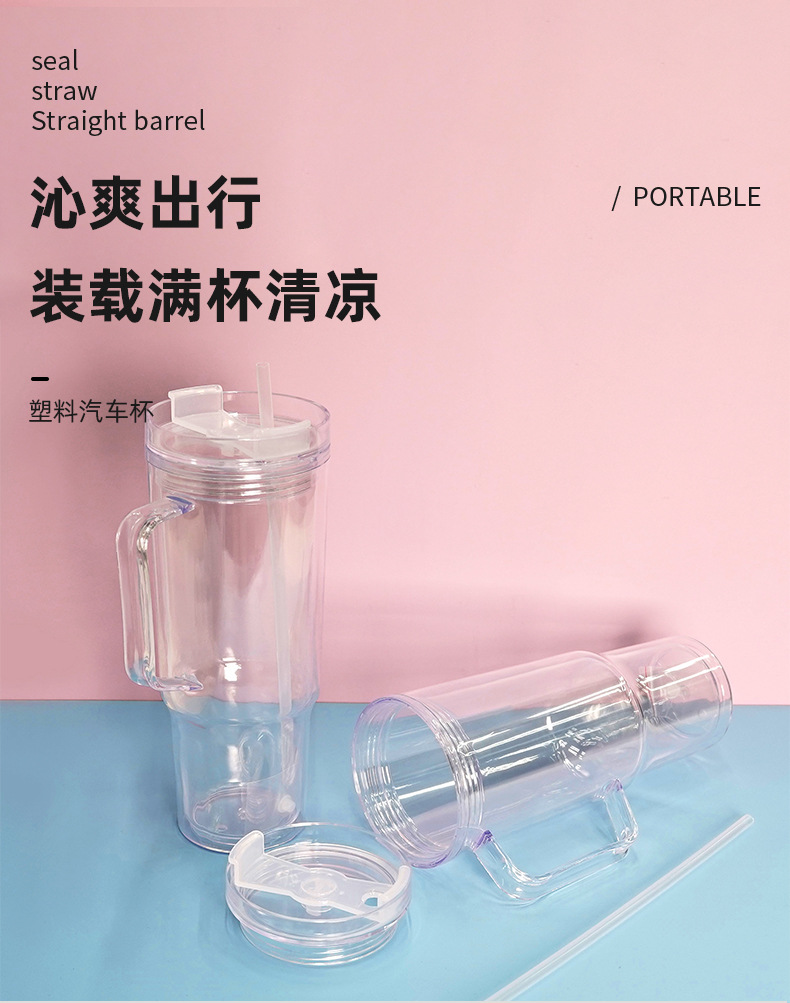 跨境网红款大容量冰霸杯PS材质运动塑料吸管杯双层DIY可加闪粉杯
