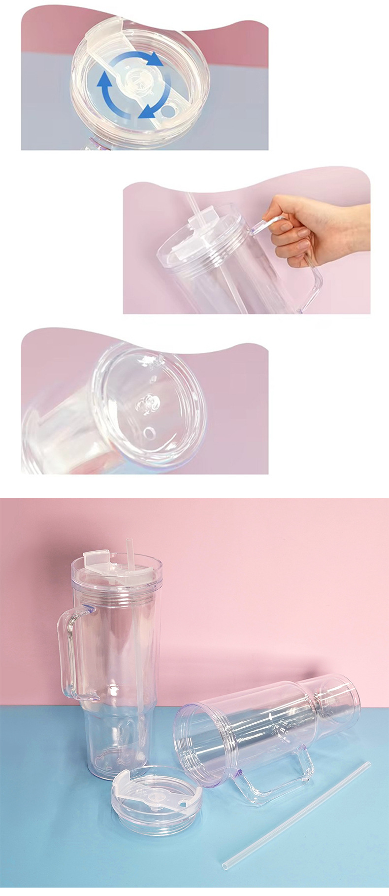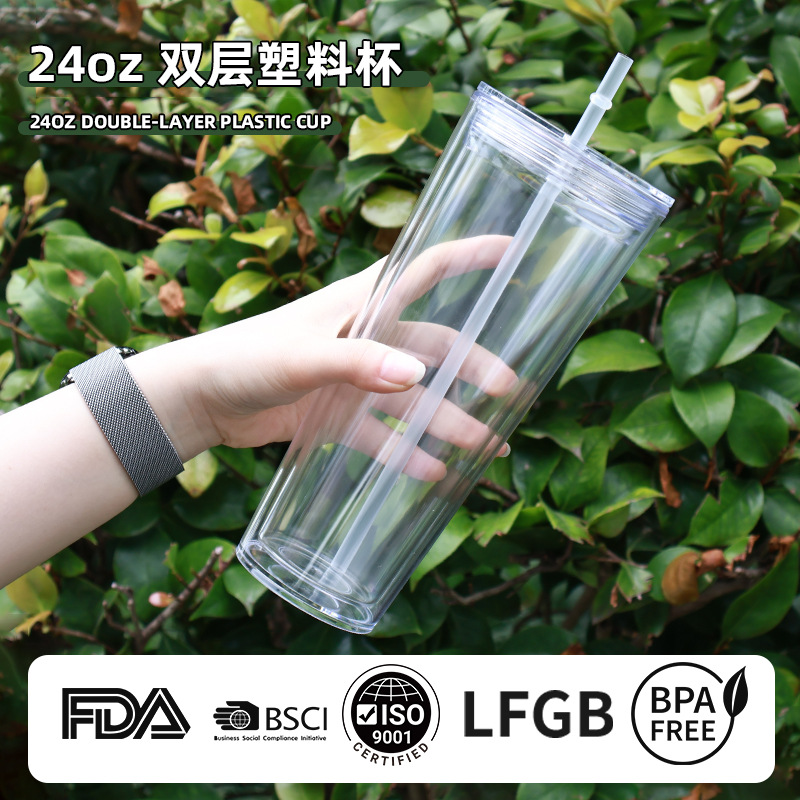 双层打孔24oz便携亚克力塑料杯可DIY 底部打孔配塞子隔热吸管水杯
