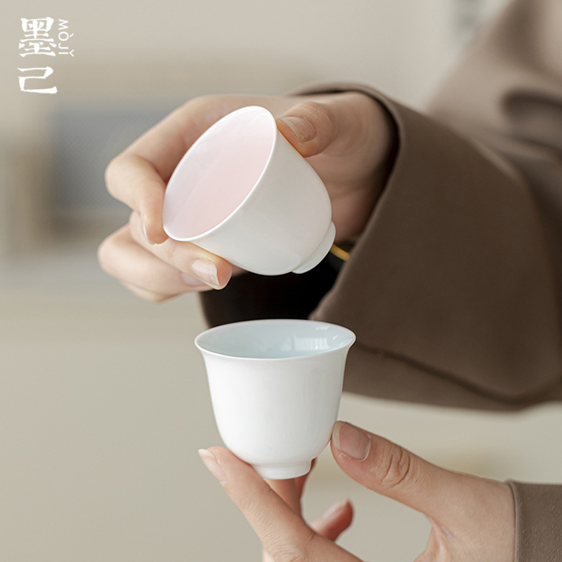墨己玉泥白磁内釉薬かわいい風陶磁器品茗杯工夫茶器家庭用お茶シングルカップトランペットカップ