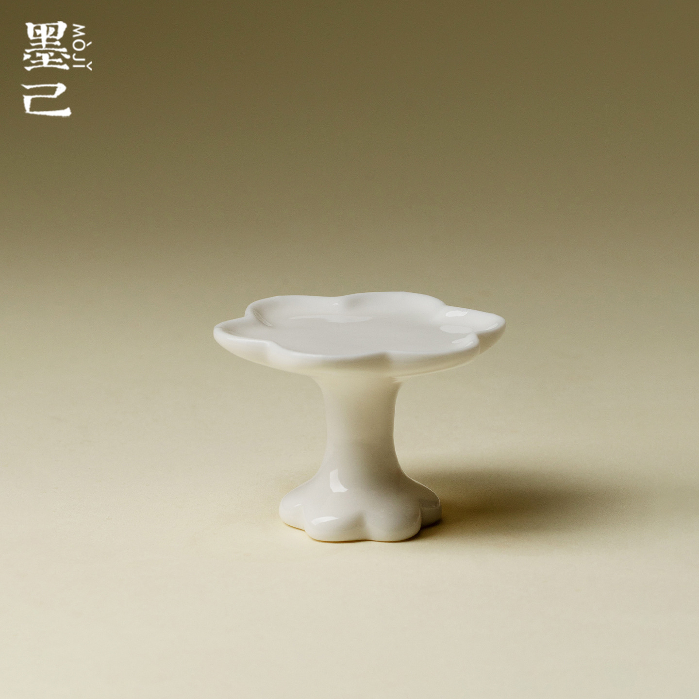 墨己玉泥甜白釉白瓷高足花朵盖置茶道配件家用茶壶盖子放置定制