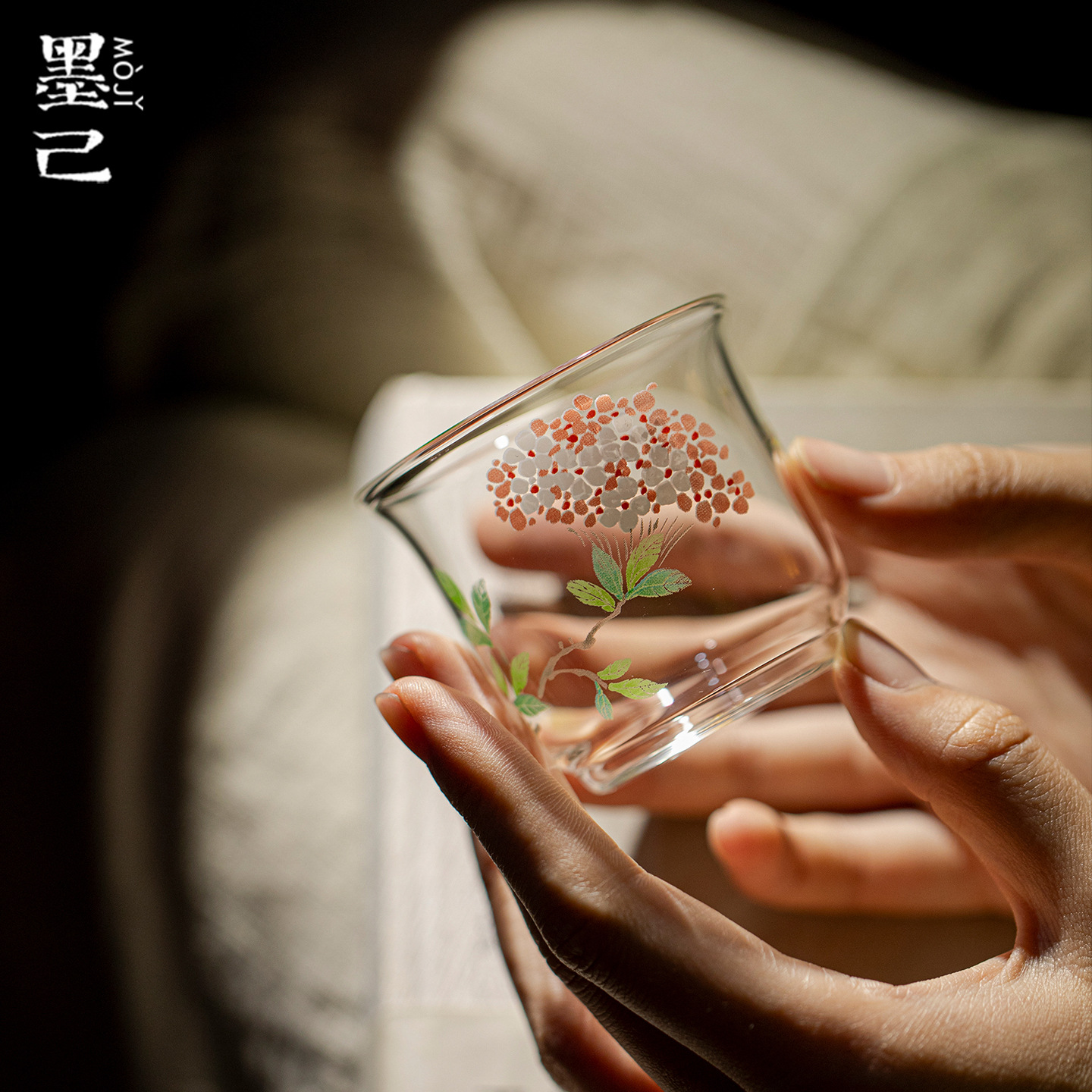 墨己瑞璃绣球花直身杯家用高颜值功夫茶具玻璃品茗杯单杯茶杯小号