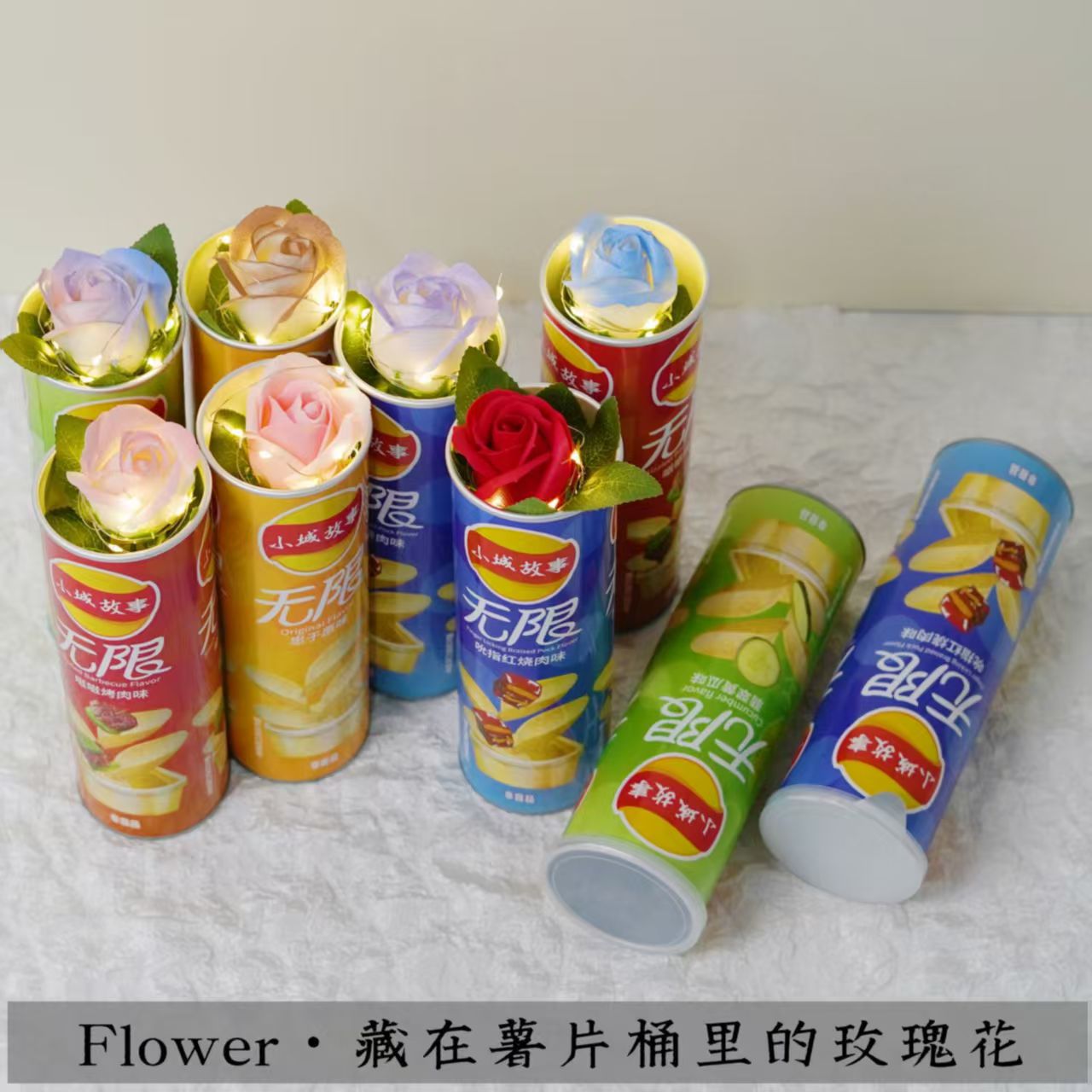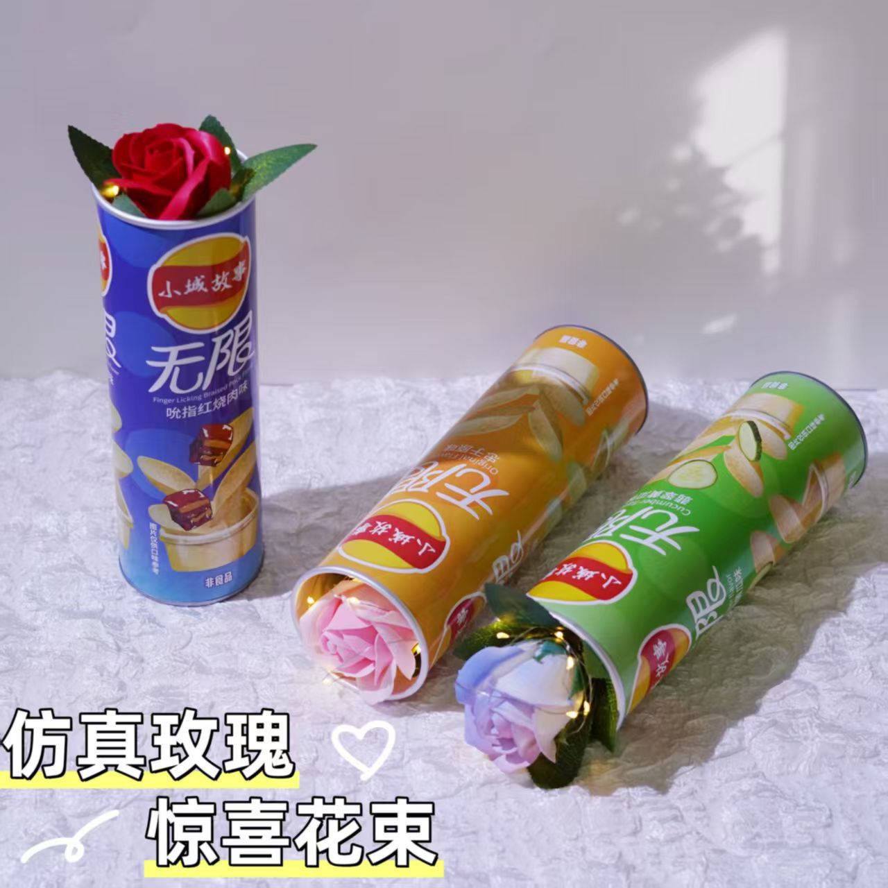 ポテトチップスのバケツにバラのバケツにポテトチップスを入れて誕生日プレゼントをくれた彼女の祝日プレゼント七夕プレゼント