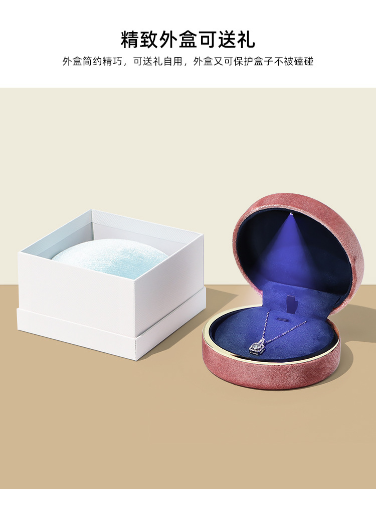新款圆形绒布灯盒LED带灯珠宝首饰盒戒指盒吊坠盒项链礼物包装盒