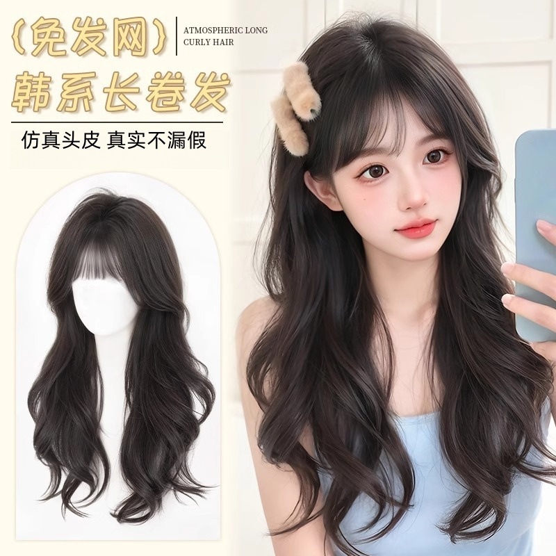【亚裔韩妹】假发全头套女仿真大头皮自然蓬松齐刘海大波浪长卷发