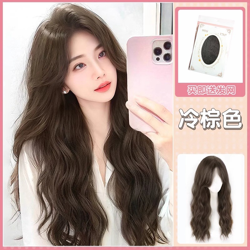 颜色 水波纹长卷发【黑茶色】中分款+发网,水波纹长卷发【冷棕色】中分款+发网
