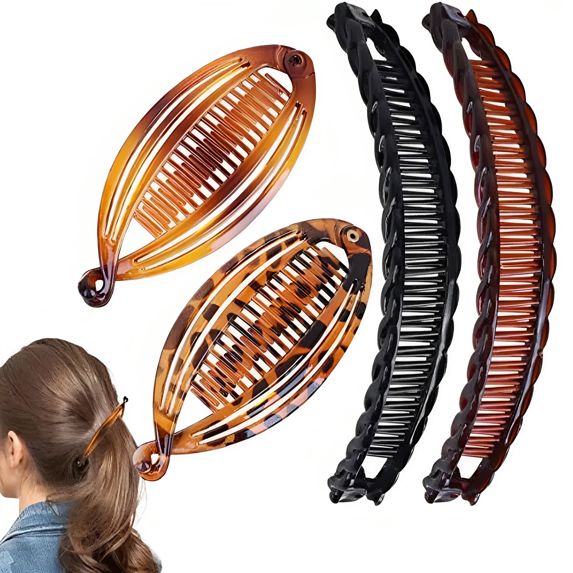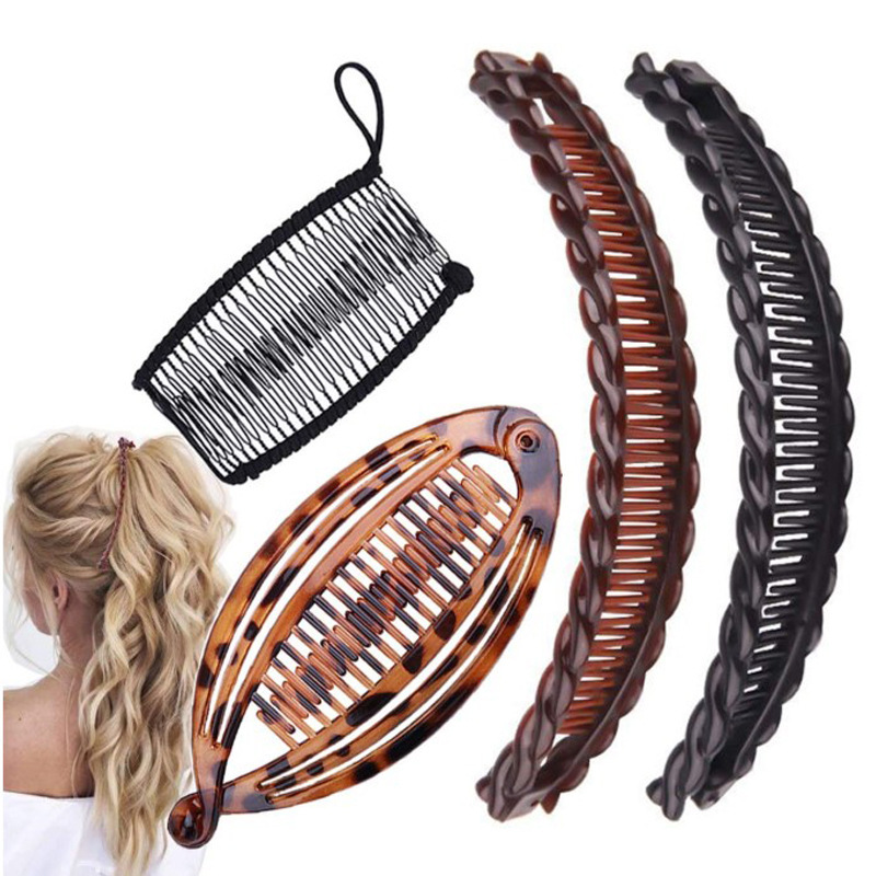 跨境欧美懒人梳盘发器鱼夹香蕉夹套装百变发梳Banana Hair Clips