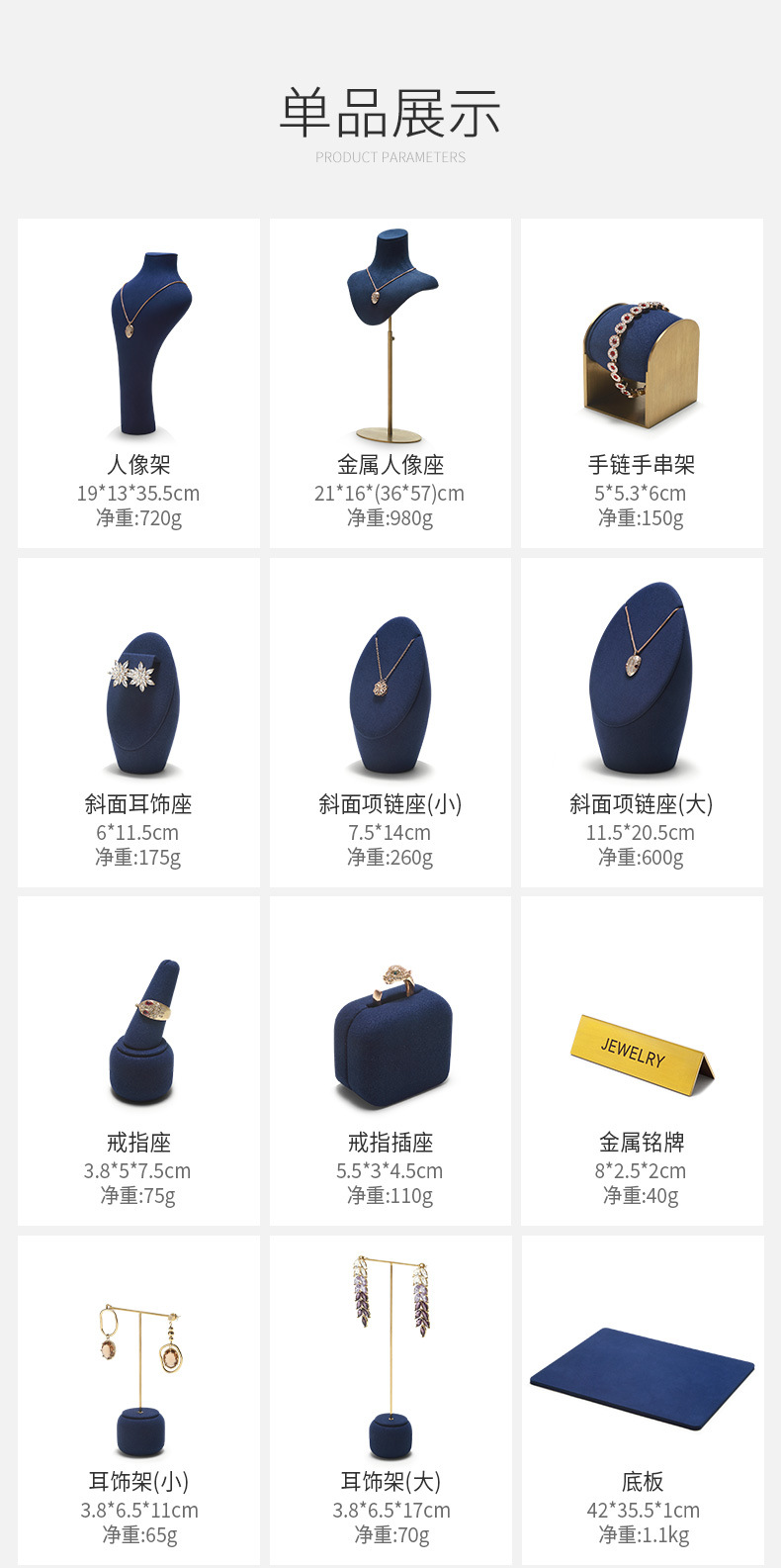 颜色 尖指戒指座,圆角插戒座,T型耳环架(矮),T型耳环架(高,耳饰展示架(椭圆型),斜面项链架(小),斜面项链架(大),人像架,底板,手表手链架,金属铭牌,金属背景架,金属背景组合(含背景板),组合一,组合二,组合三,组合七,组合八,组合九