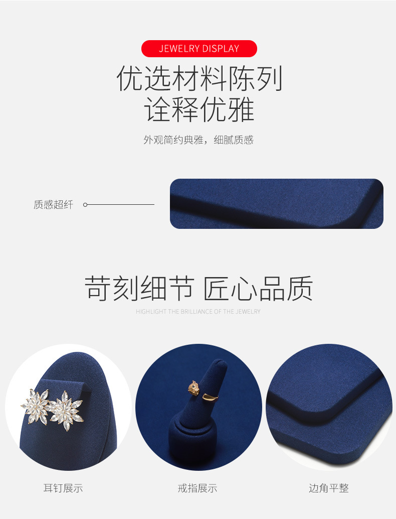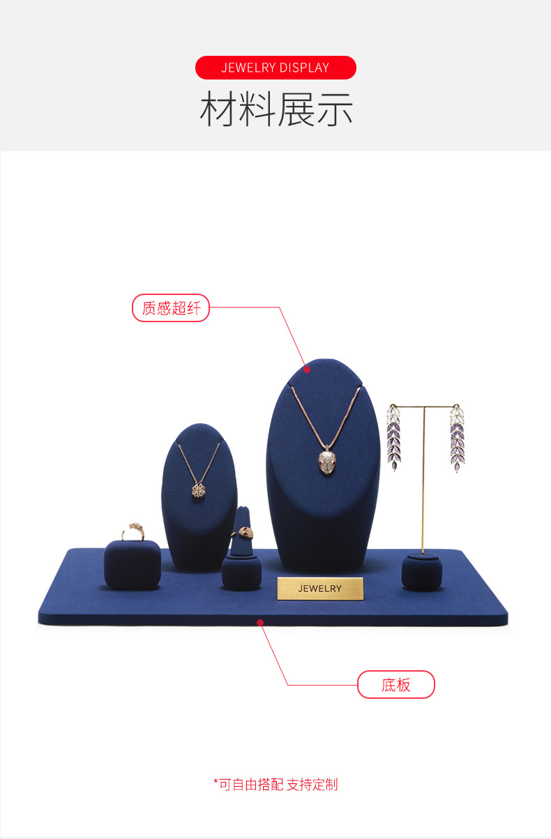 工厂直供高档珠宝展示道具戒指项链耳环首饰黑色超纤陈列架托定制