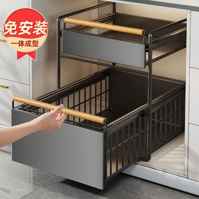 台所の下水棚多機能調味料食器皿池引き出し式収納棚戸棚バスケット棚棚棚工場