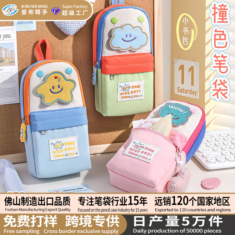 2025 新しい小さなスクールバッグ文具箱小さな新鮮な大容量鉛筆バッグニッチ非衝突スタイルコントラストカラー学生鉛筆バッグ