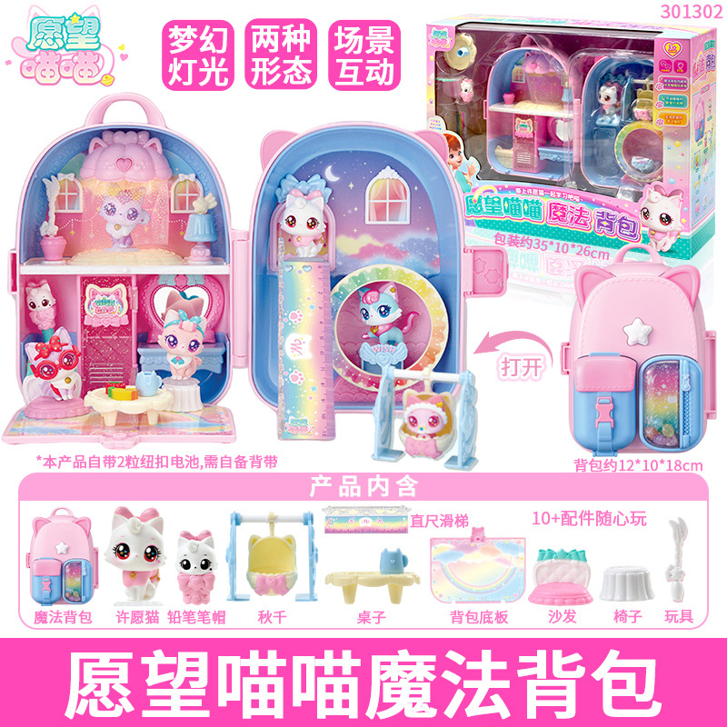 愿望喵喵玩具魔法书包发光套装可爱猫猫房子许愿猫小女孩生日礼物