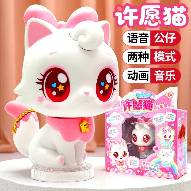 正版愿望喵喵许愿猫公仔说话唱歌玩偶猫窝收纳卡牌女孩玩具礼物