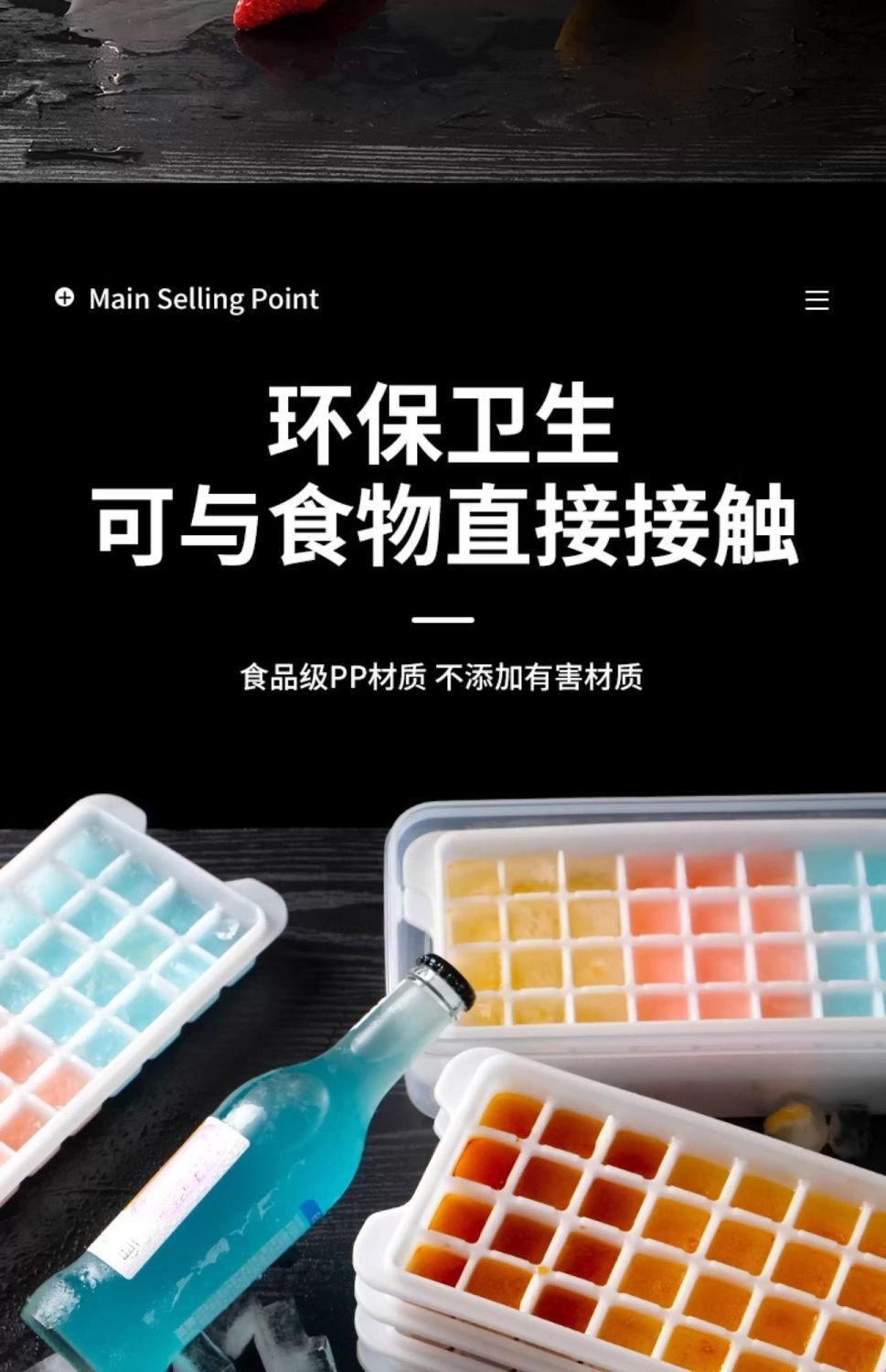 冰块模具大容量按压冰格家用食品级制冰储冰盒带盖冰箱冻冰块