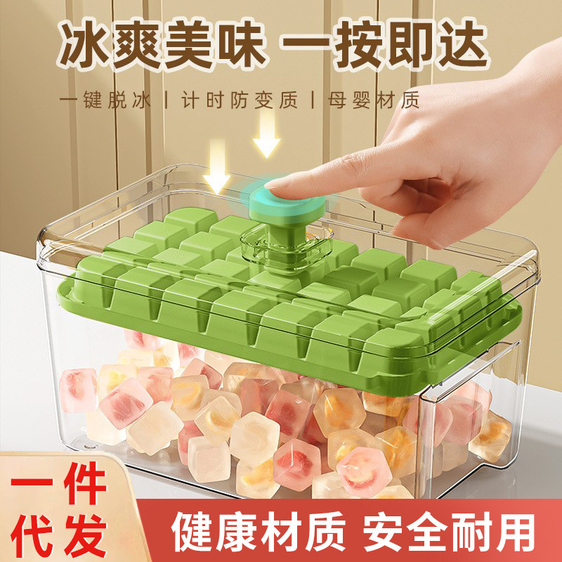 新しいプッシュ式製氷皿アイスボックス冷蔵庫アイスキューブアーティファクト型蓋付き家庭用密封食品グレードの簡単に離型可能