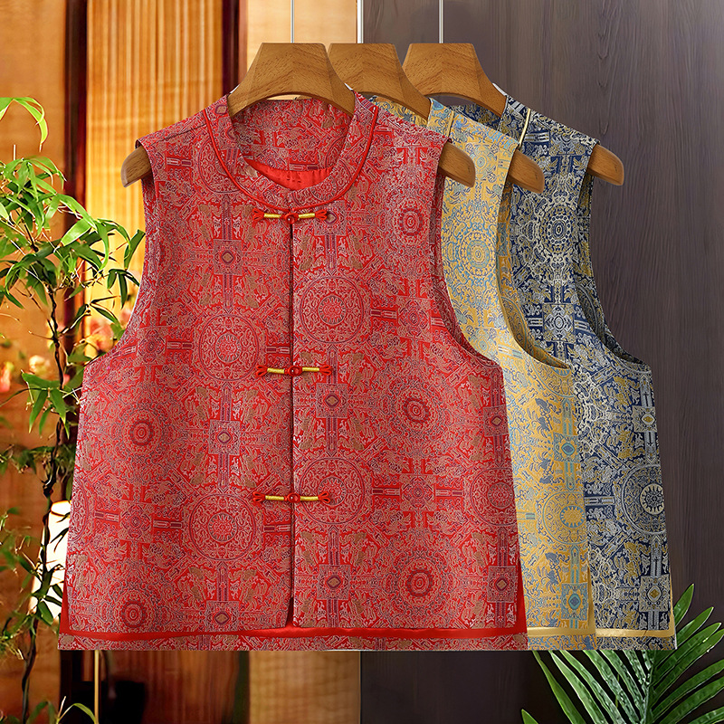 2025 中国風ボタンベスト新レトロ女性の国民風トップジャカードチョッキベストジャケット新
