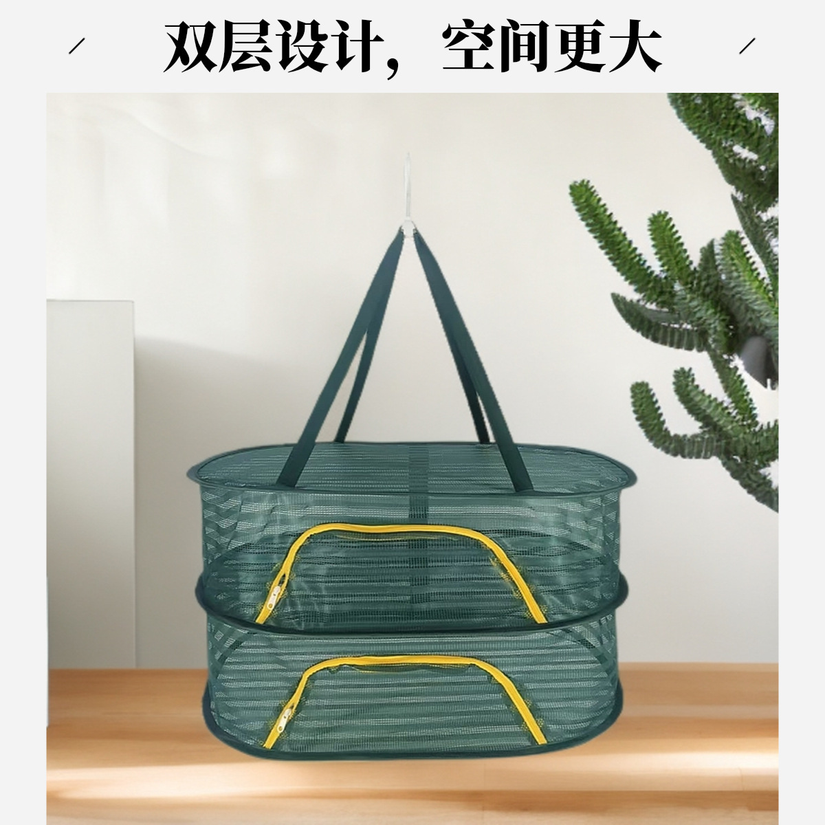 【直送】墨緑色の大型厚手長方形物干しかご、強化物干しネットポケット収納、二層設計
