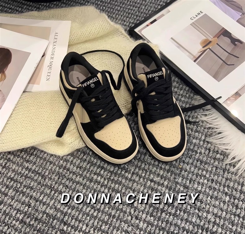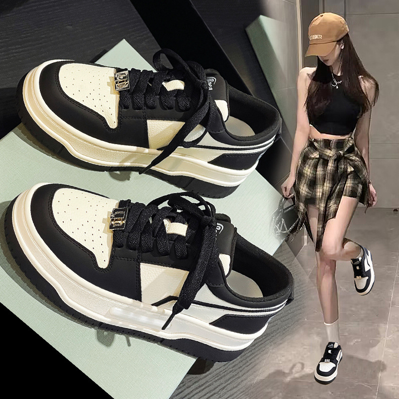小柄な女性向け、身長アップ効果のある本革厚底白スニーカー、2025年秋の人気カジュアル白黒スポーツパンダスニーカー