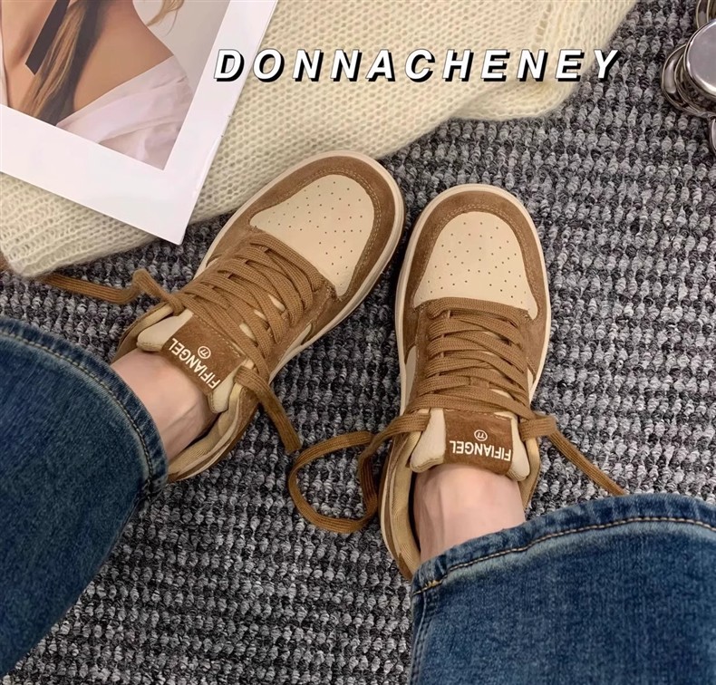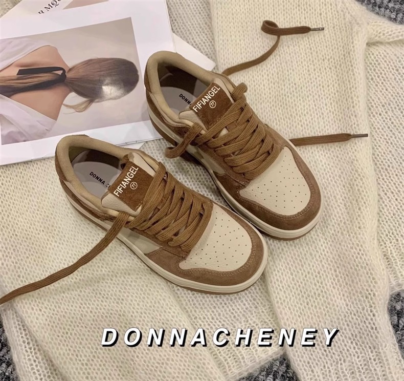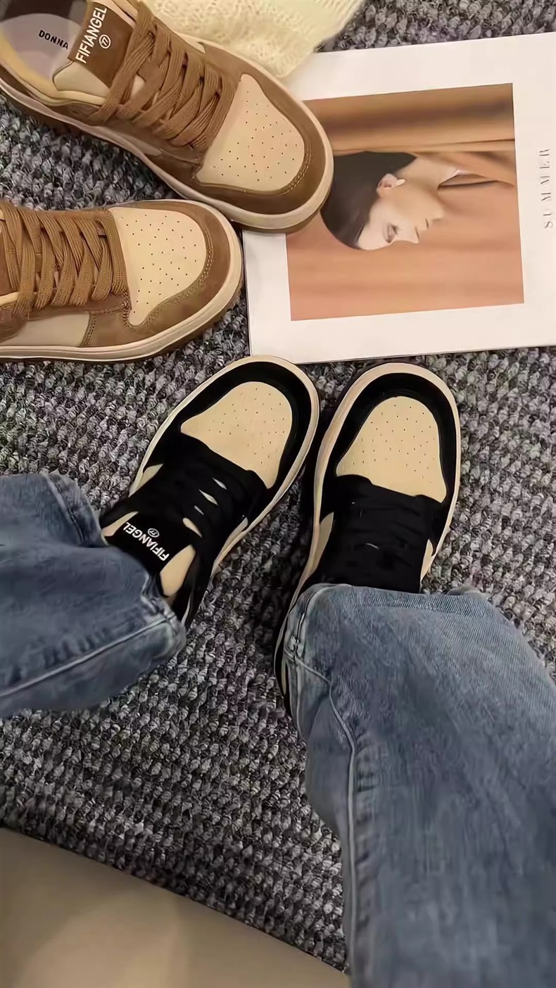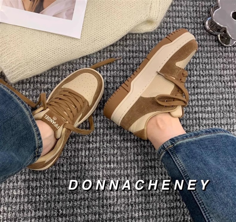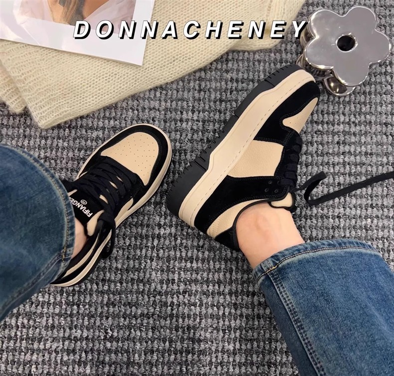 香港真皮厚底百搭板鞋女2025新款春季拼色韩版休闲鞋美拉德运动鞋