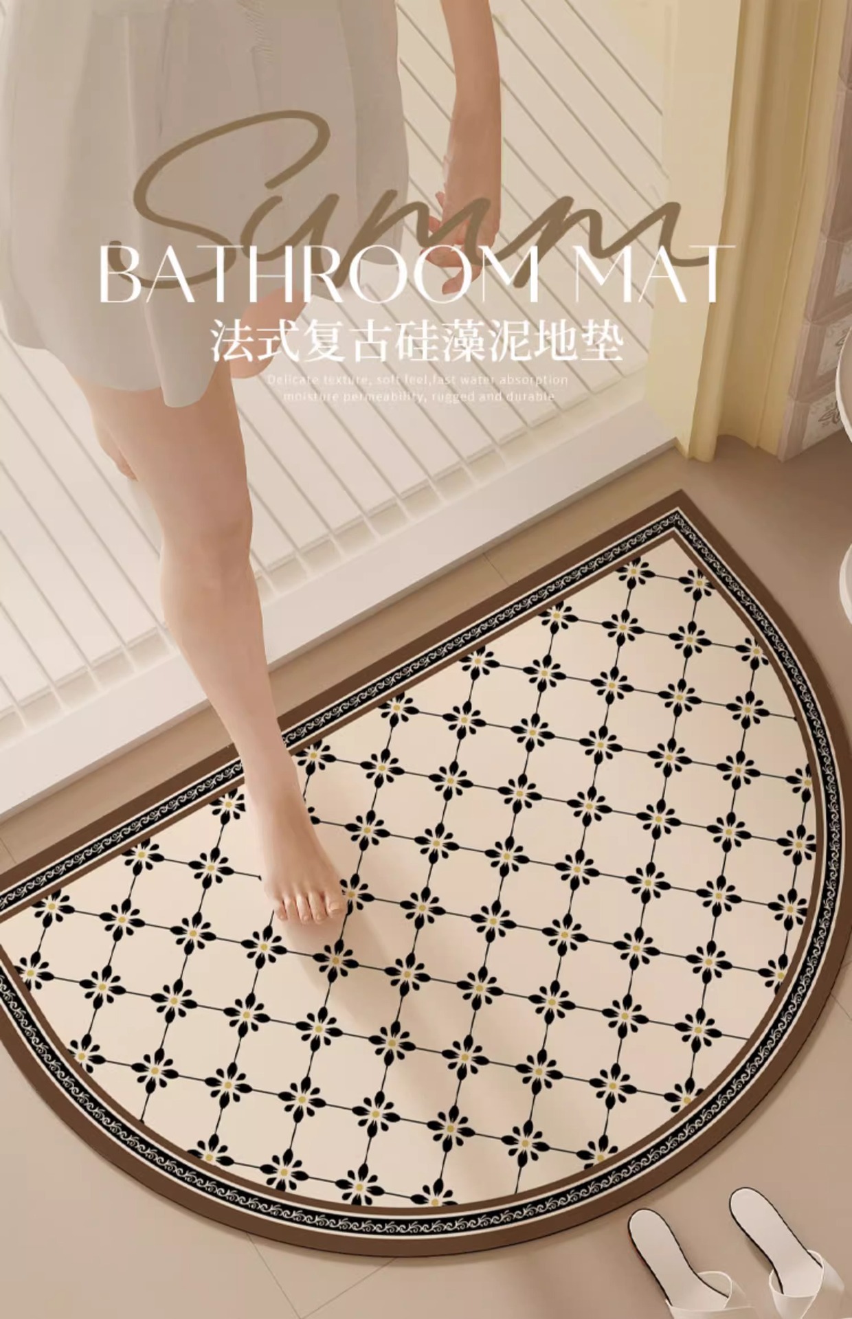 法式复古半圆浴室地垫硅藻泥吸水防滑卫生间脚垫玄关耐脏耐磨门垫