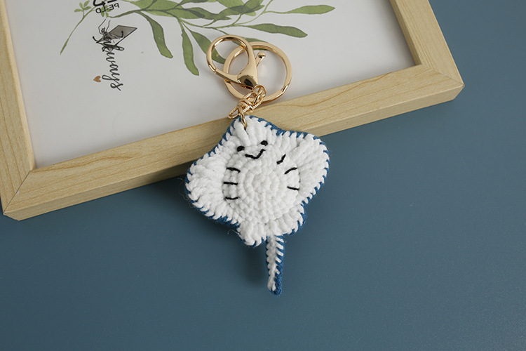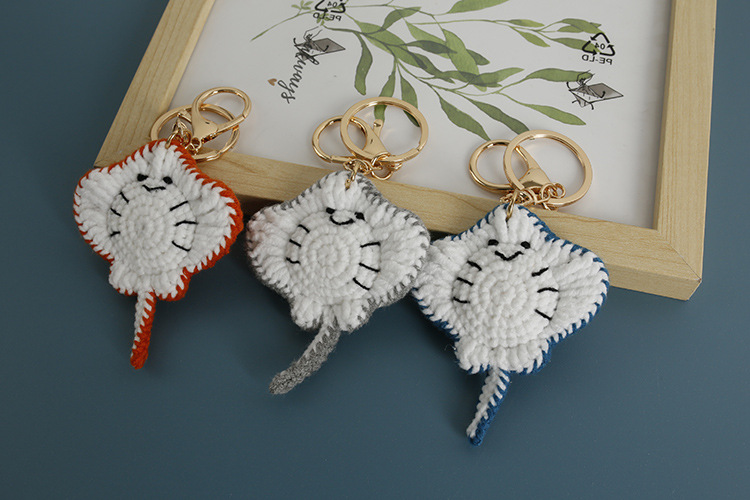 新款手工编织海洋动物系列手工挂件 毛线钩织鳐鱼钥匙扣 手作包挂