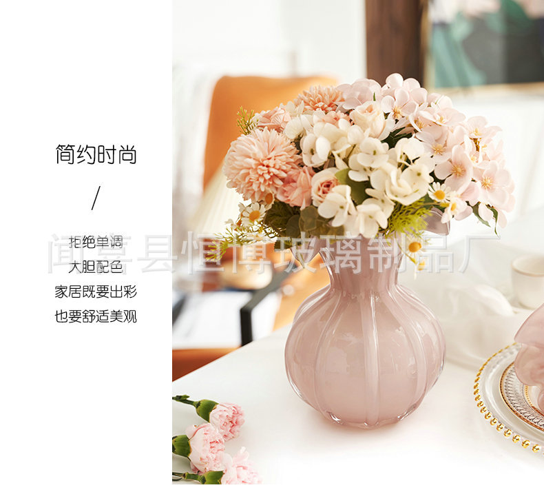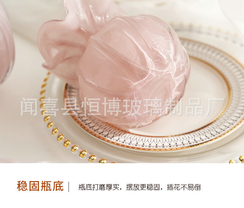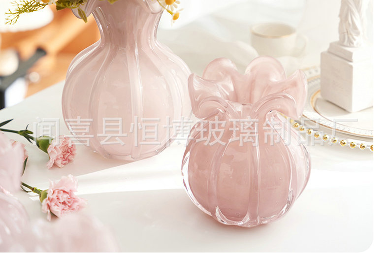 新款创意ins风玻璃花瓶摆件客厅插花玻璃粉色水养轻奢高级感花器