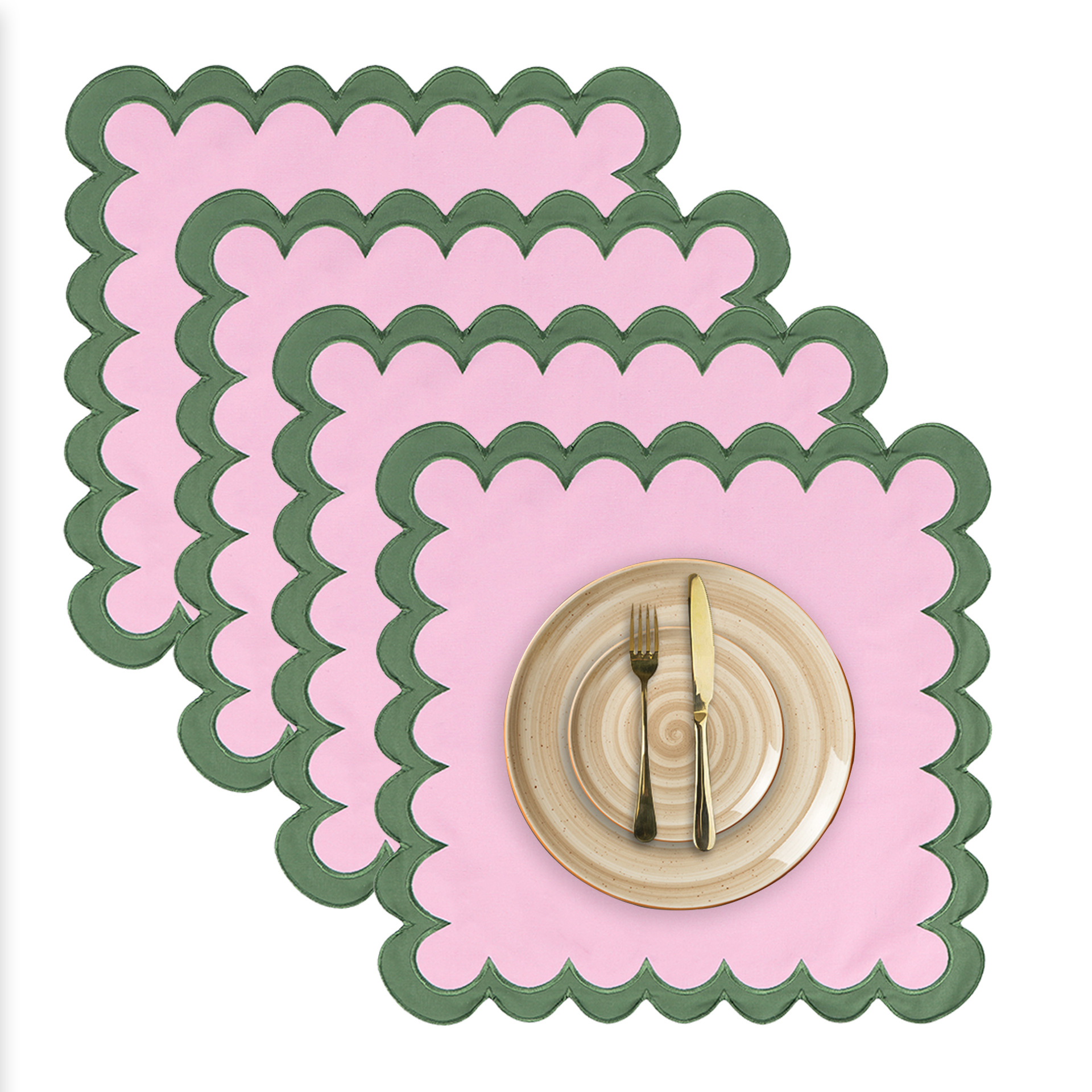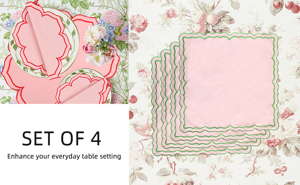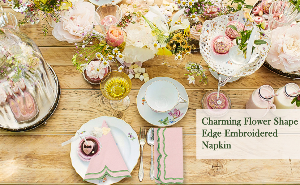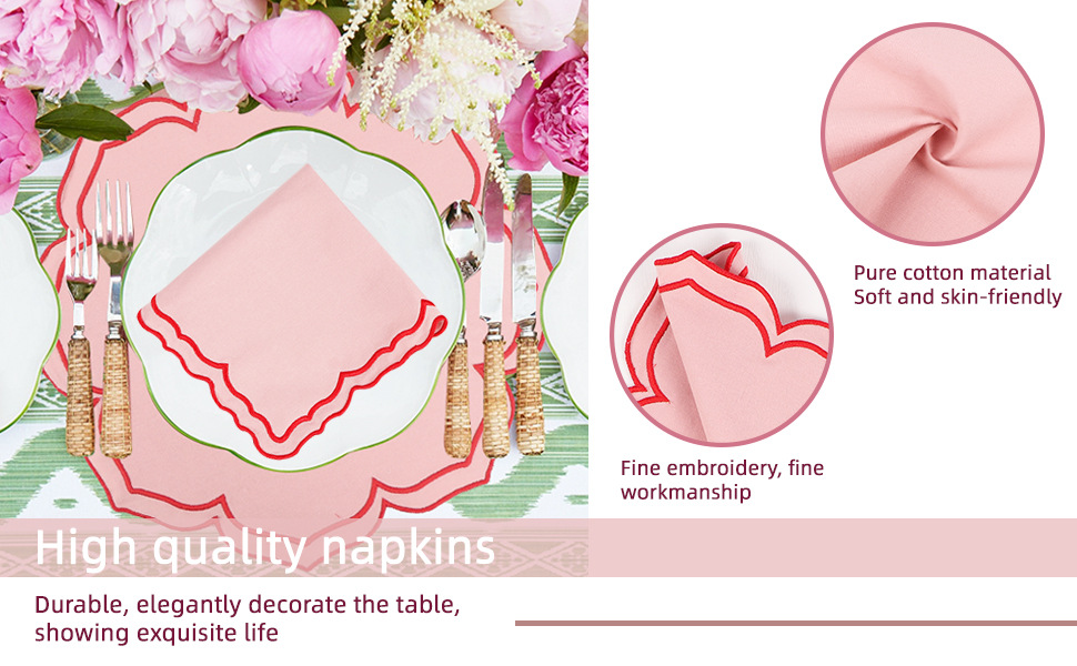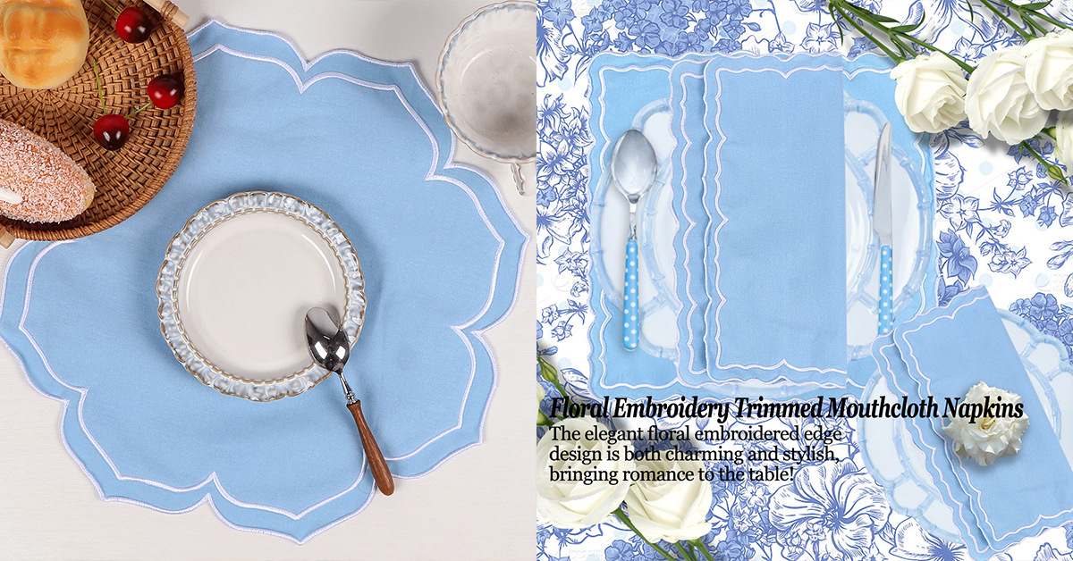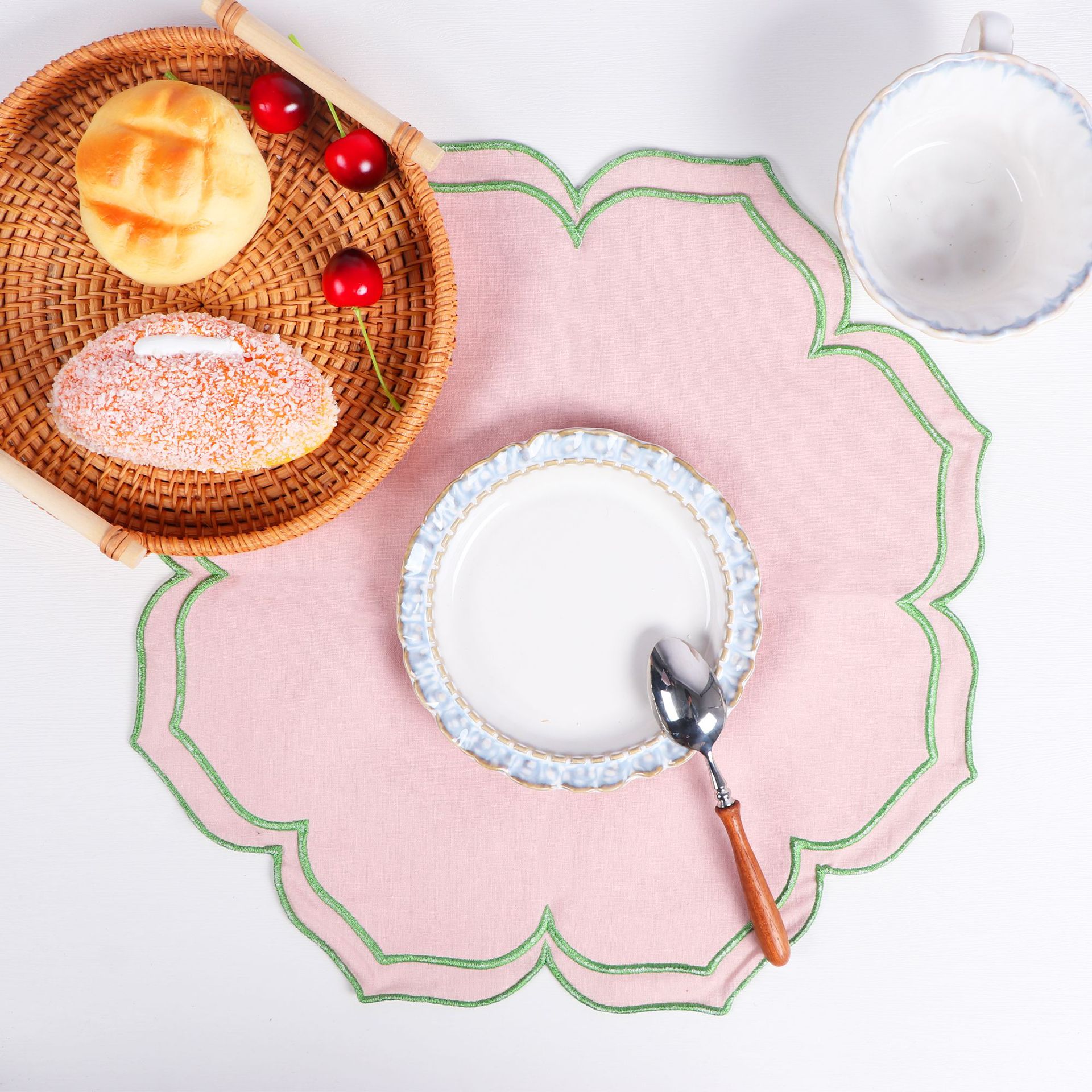 跨境热销全棉餐巾贝壳边刺绣糖果色莲花餐垫
