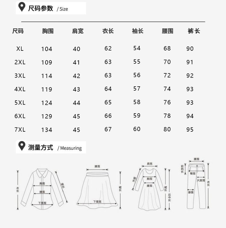 尺码 XL建议95-110斤,XXL建议111-125斤,XXXL建议126-140斤,4XL建议141-155斤,5XL建议156-170斤,6XL建议171-185斤,7XL建议185-200斤