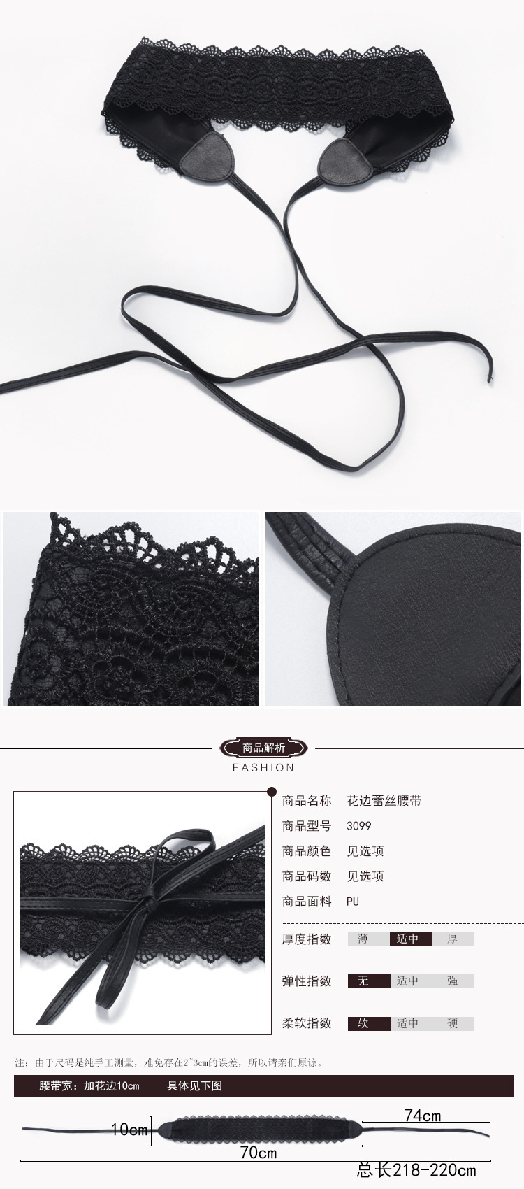 女士腰带多色可选蕾丝花边超宽腰带 甜美腰带女 宽腰封 女士皮带